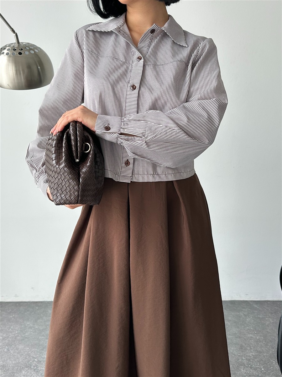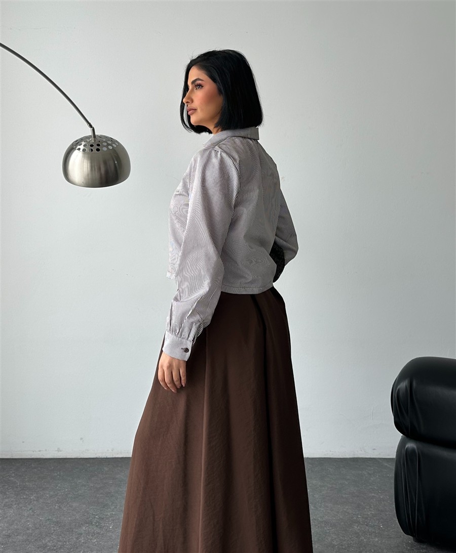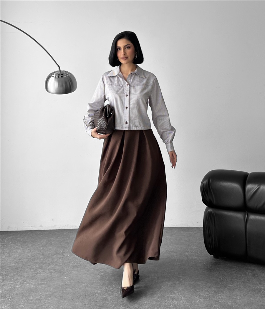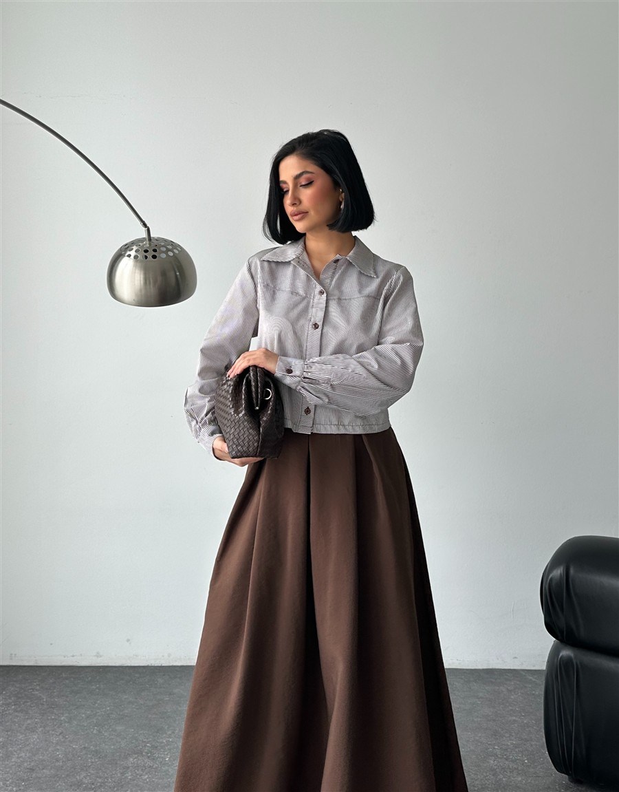 Çizgili Gömlek & Pileli Etek Tesettür Takım RC9024