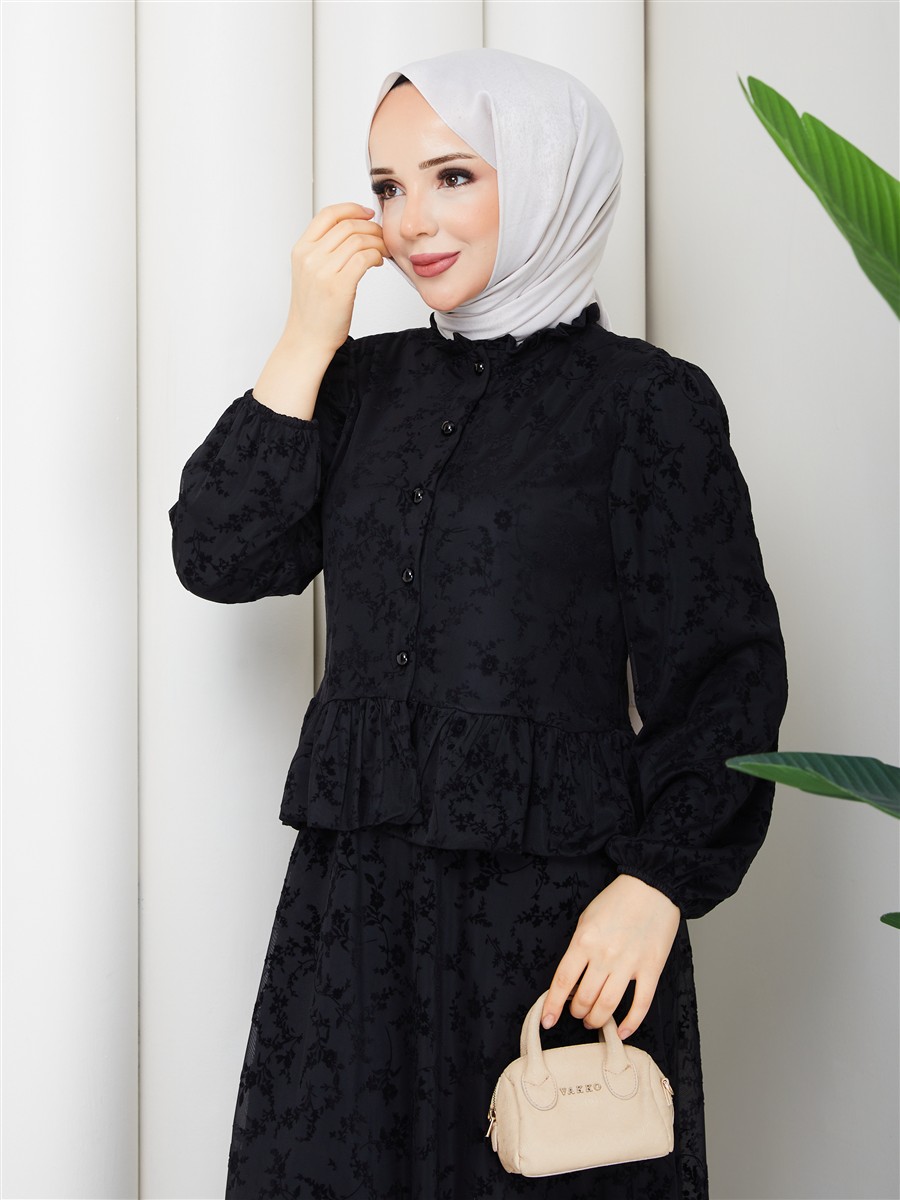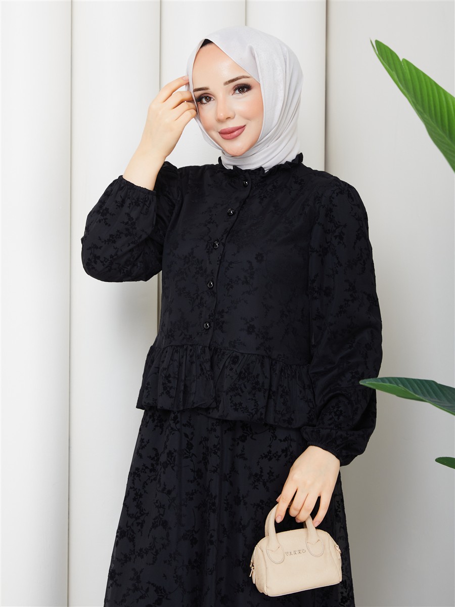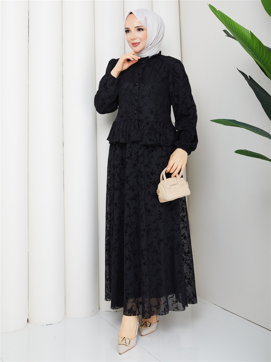 Dantel Kumaş Fırfır Detaylı Gömlek & Etek Tesettür Takım RC9035