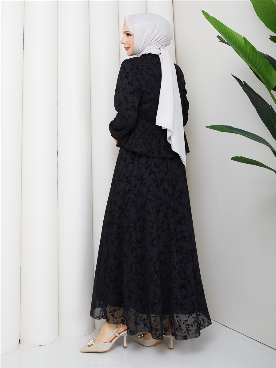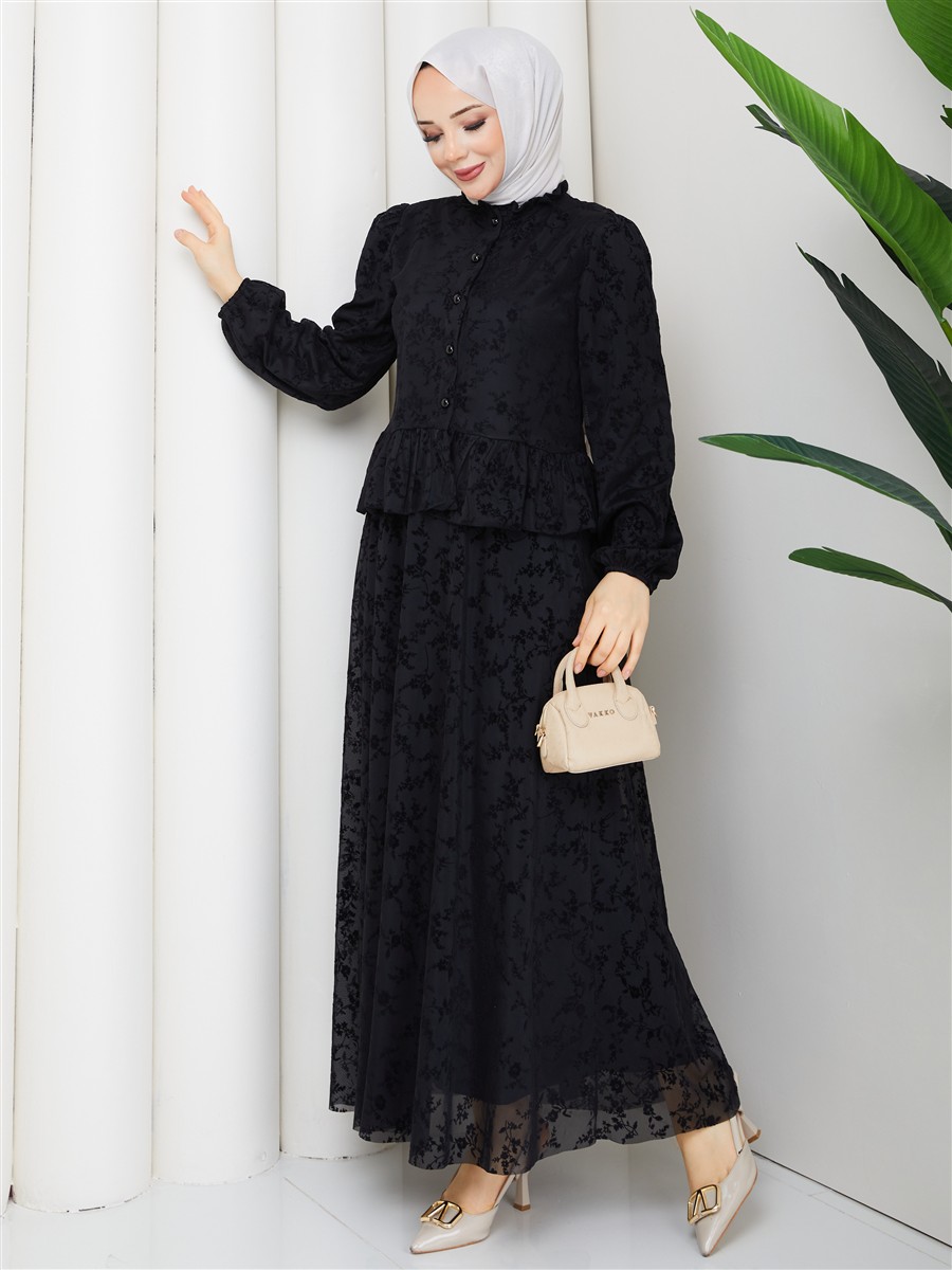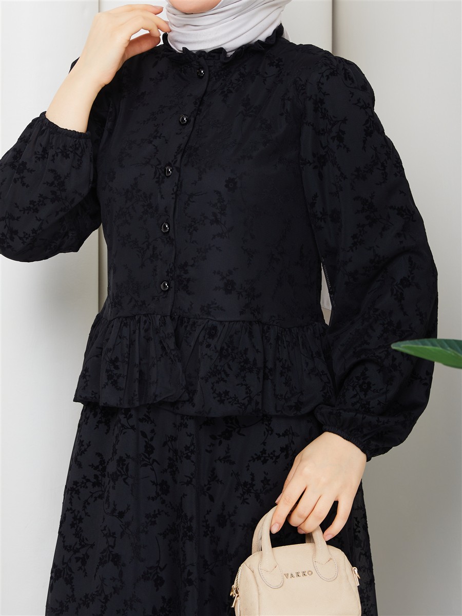 Dantel Kumaş Fırfır Detaylı Gömlek & Etek Tesettür Takım RC9035