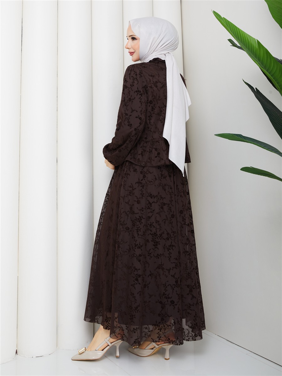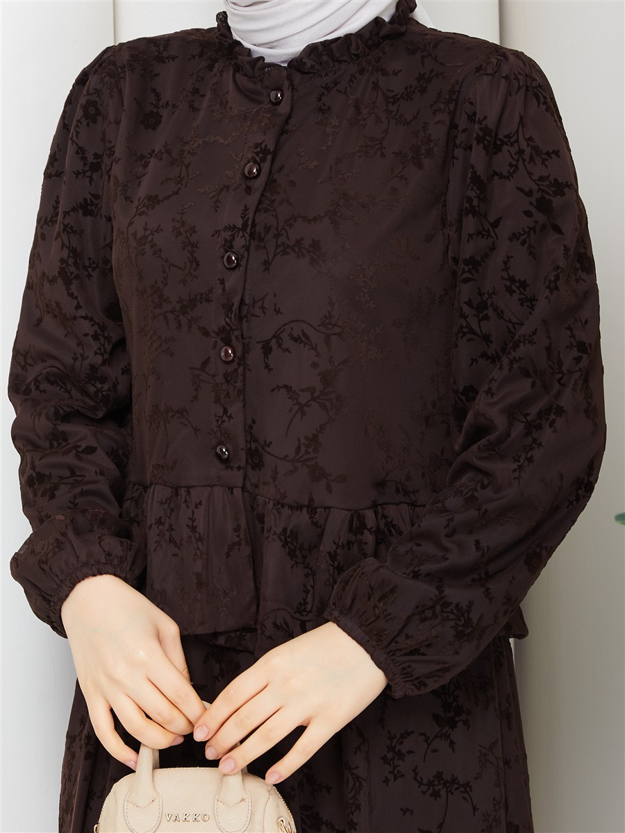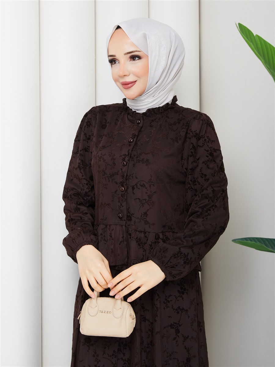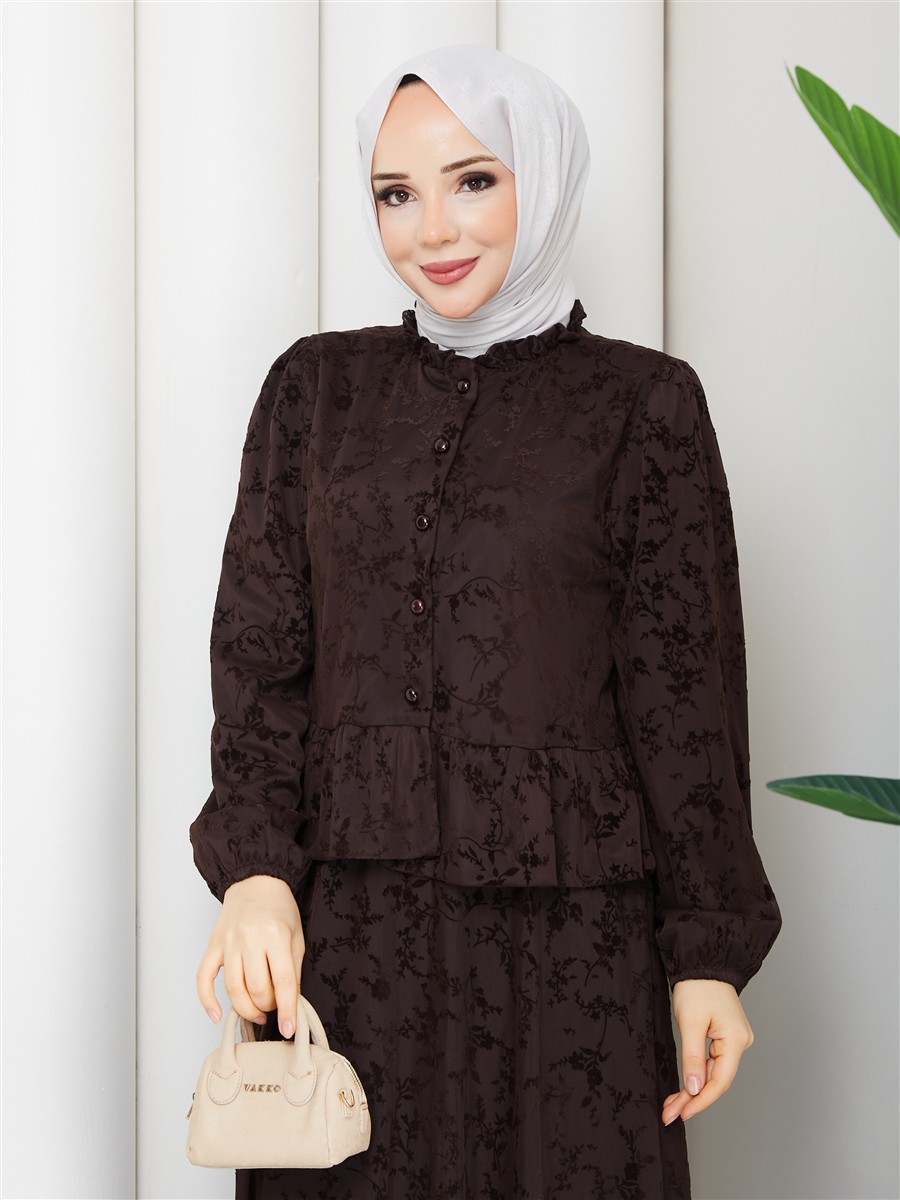 Dantel Kumaş Fırfır Detaylı Gömlek & Etek Tesettür Takım RC9035