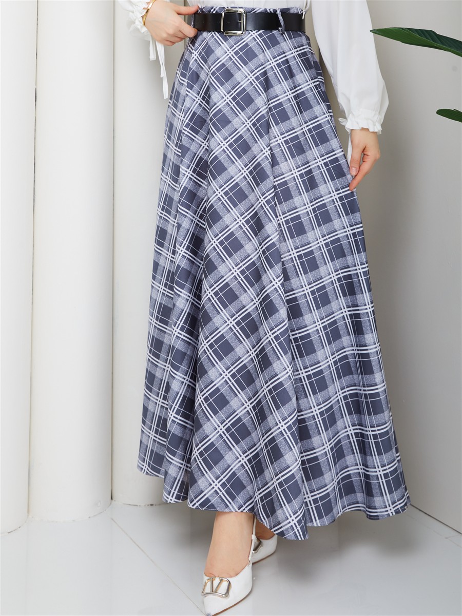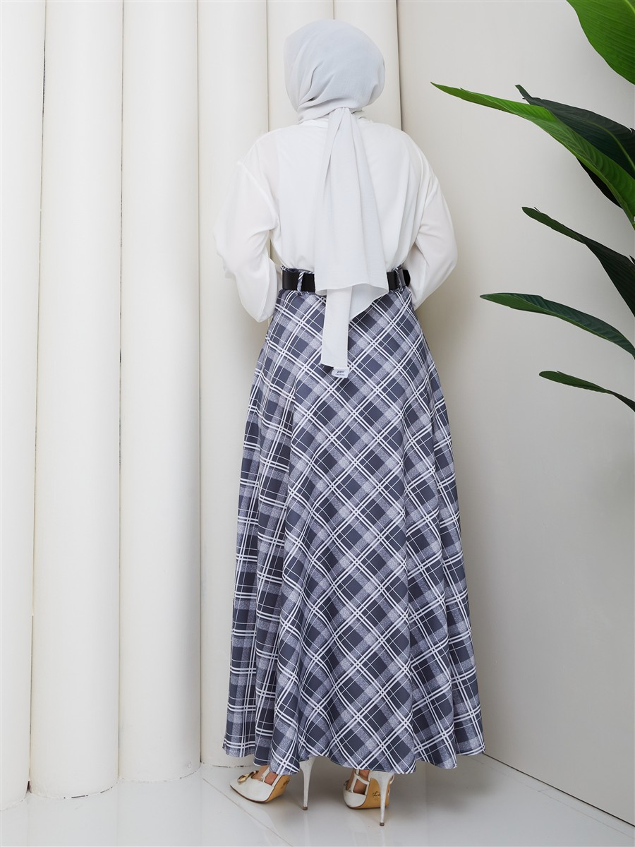 Ekose Desenli Kemerli Etek RC4017