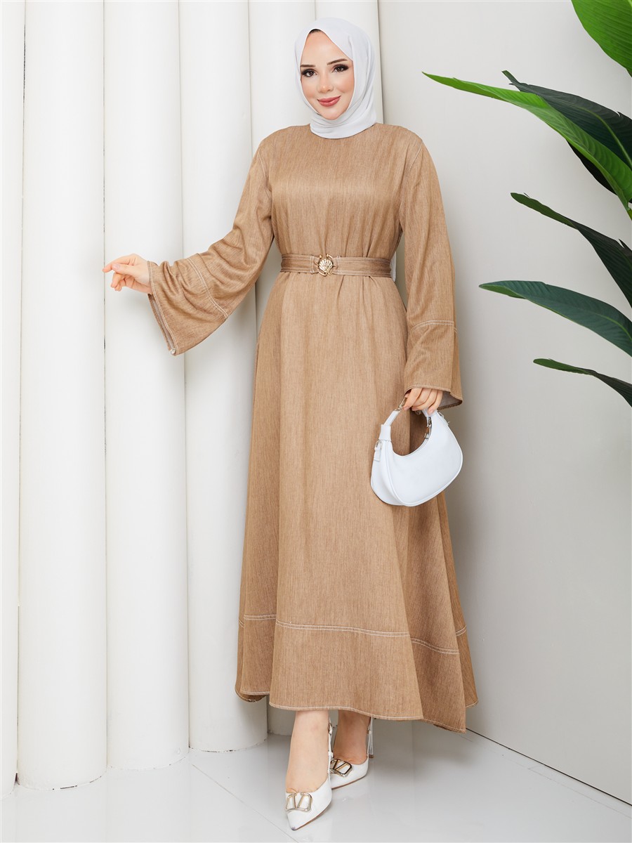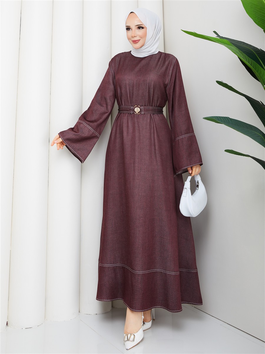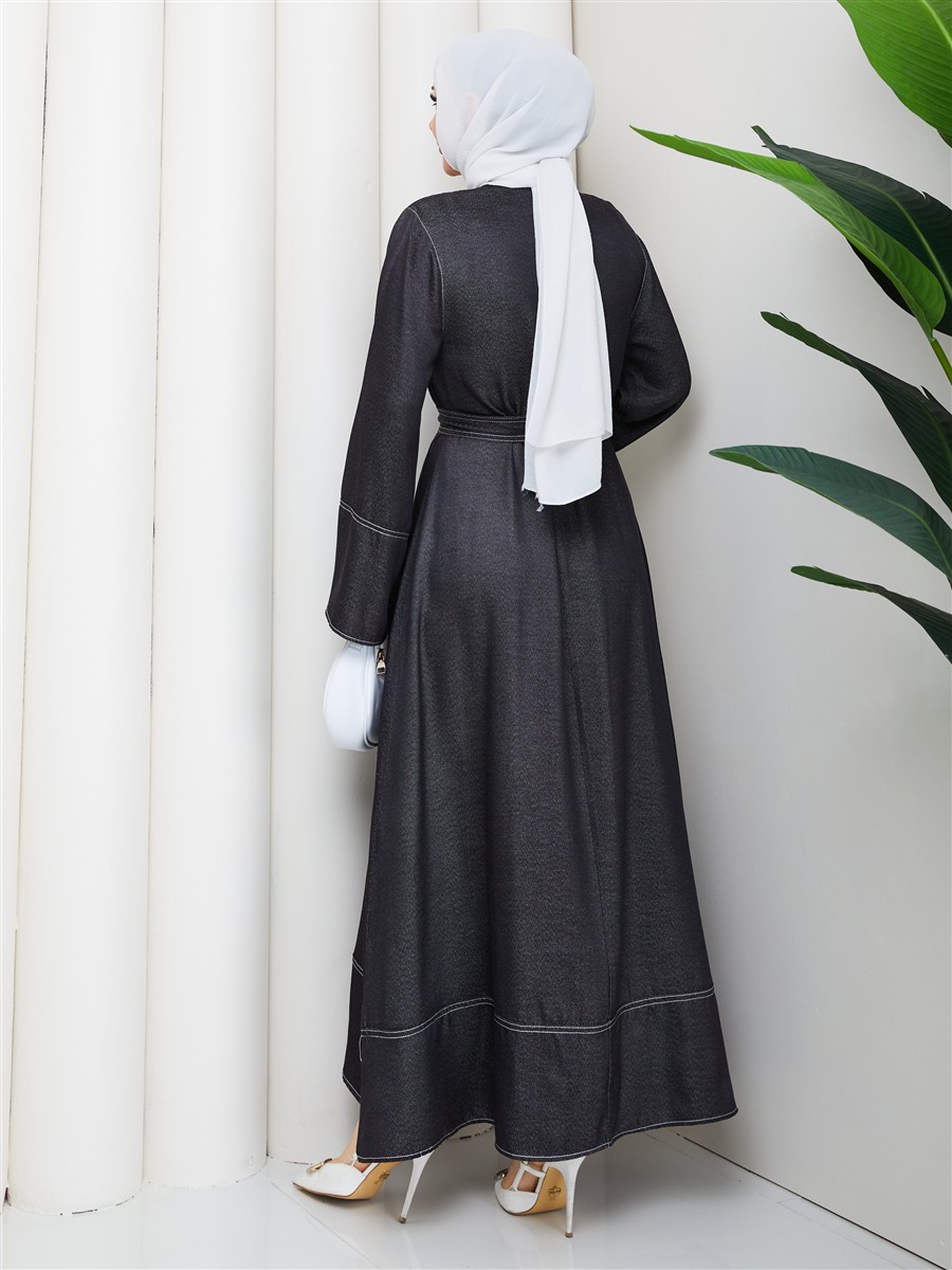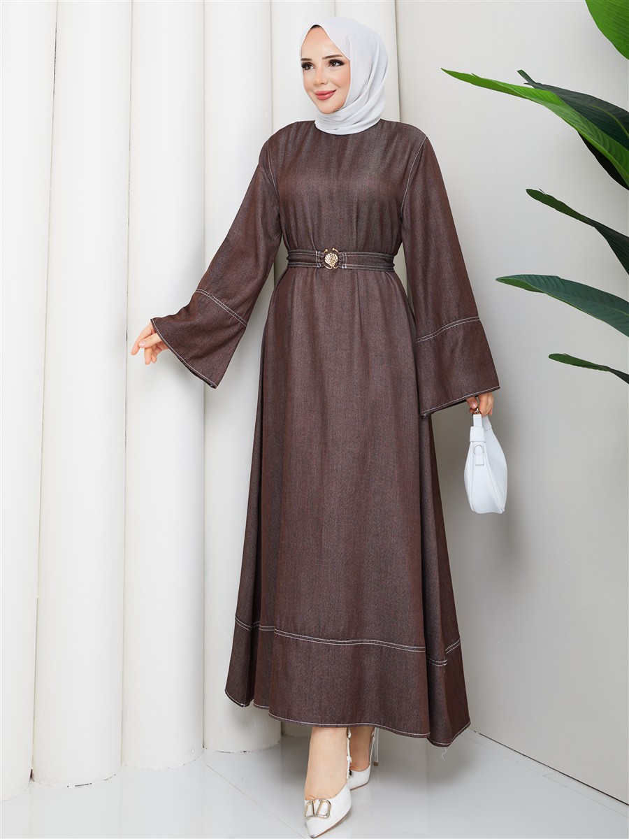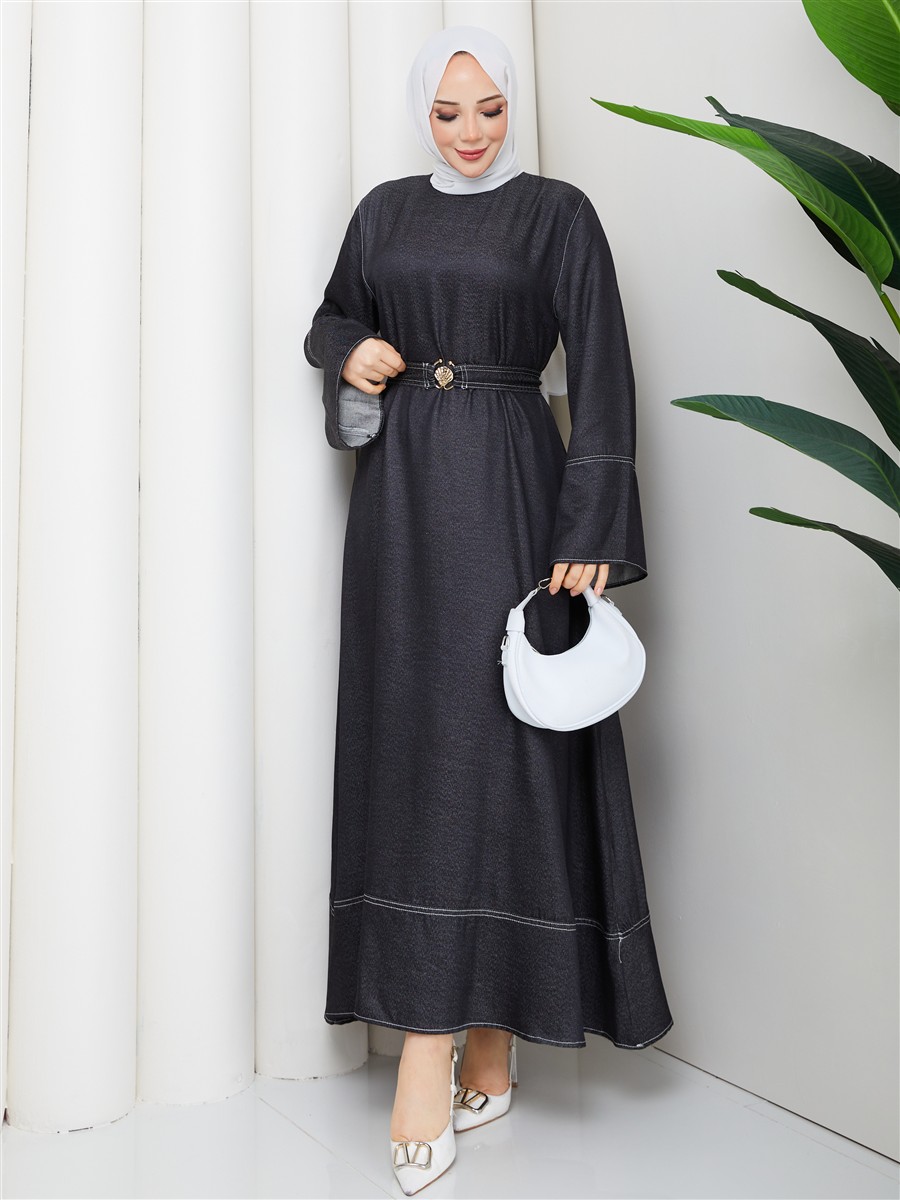 Kemer Detaylı Denim Kot Tesettür Elbise RC6036