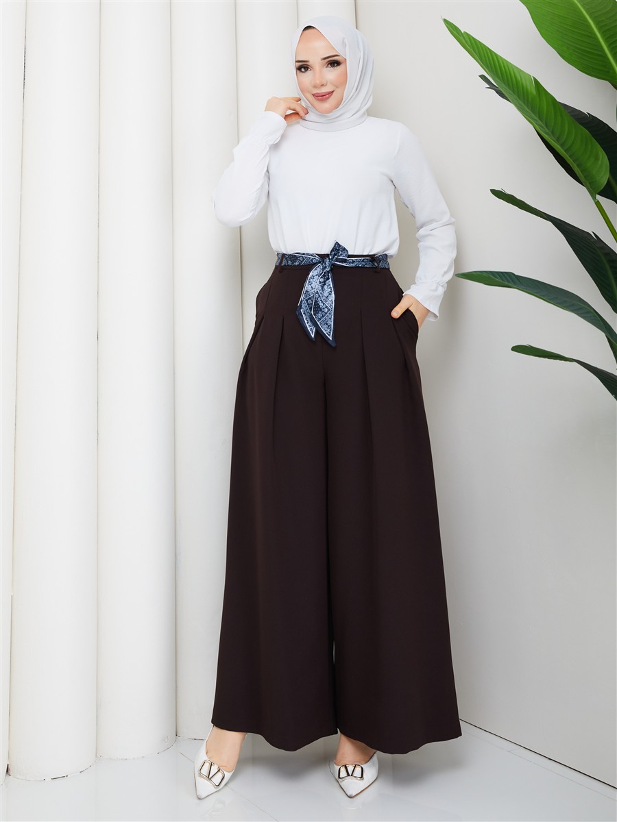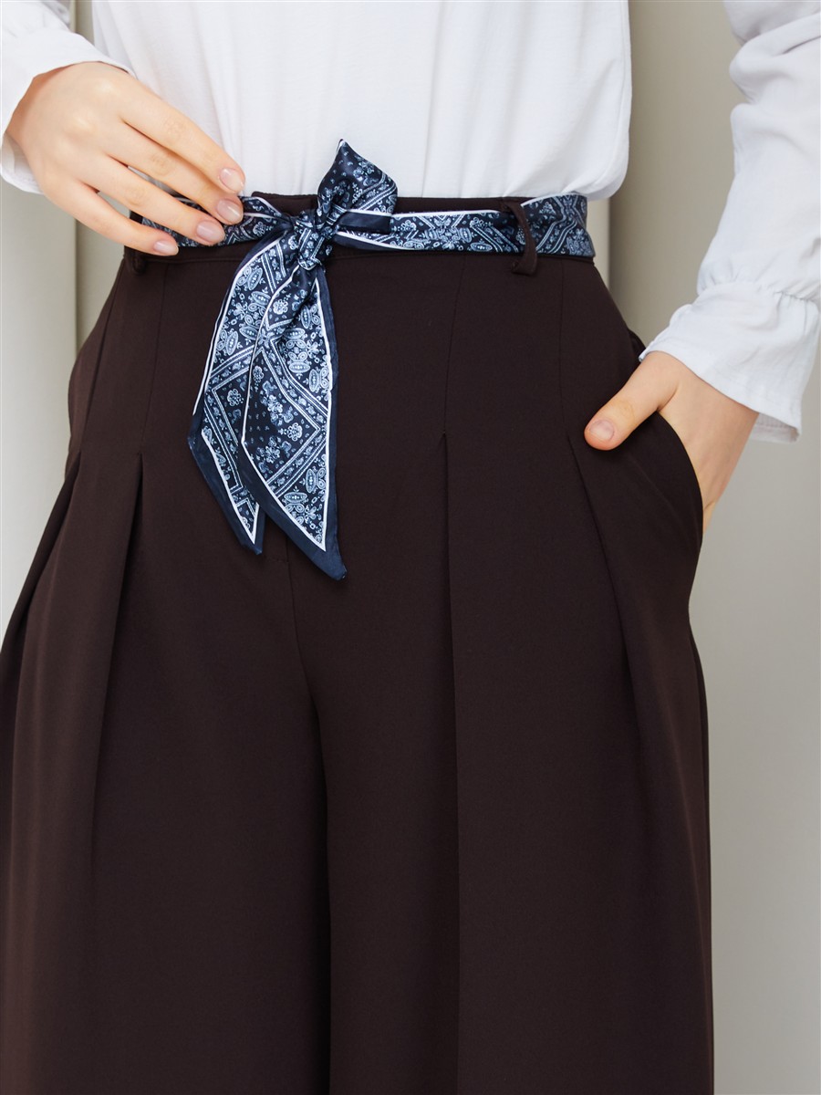 Pileli Kuşaklı Yüksek Bel Pantolon RC7000
