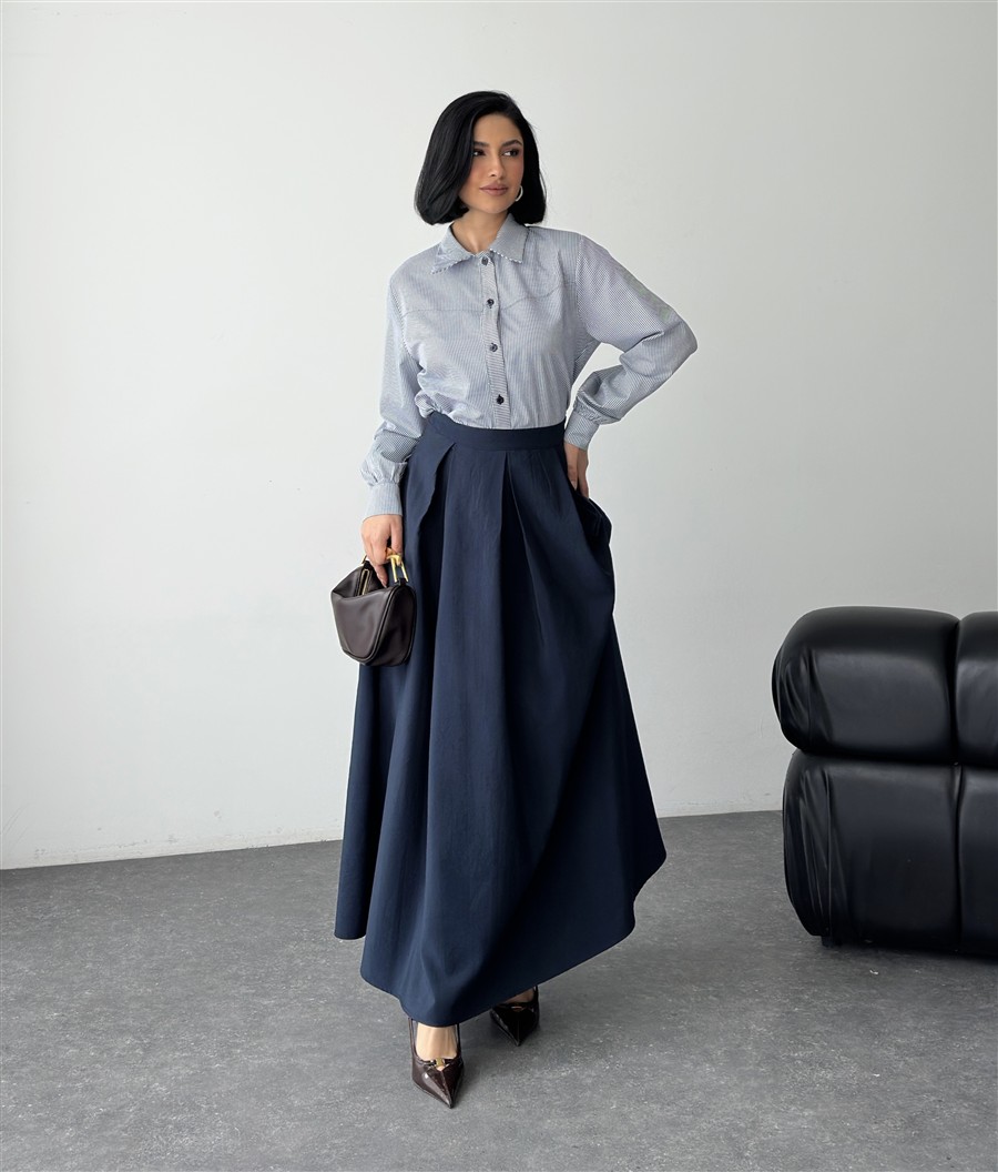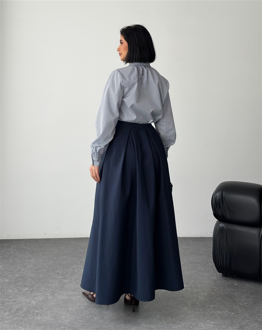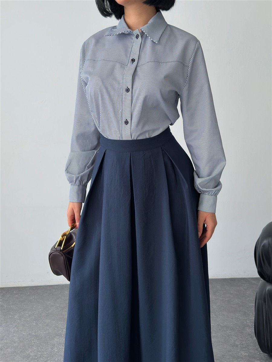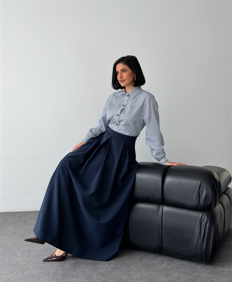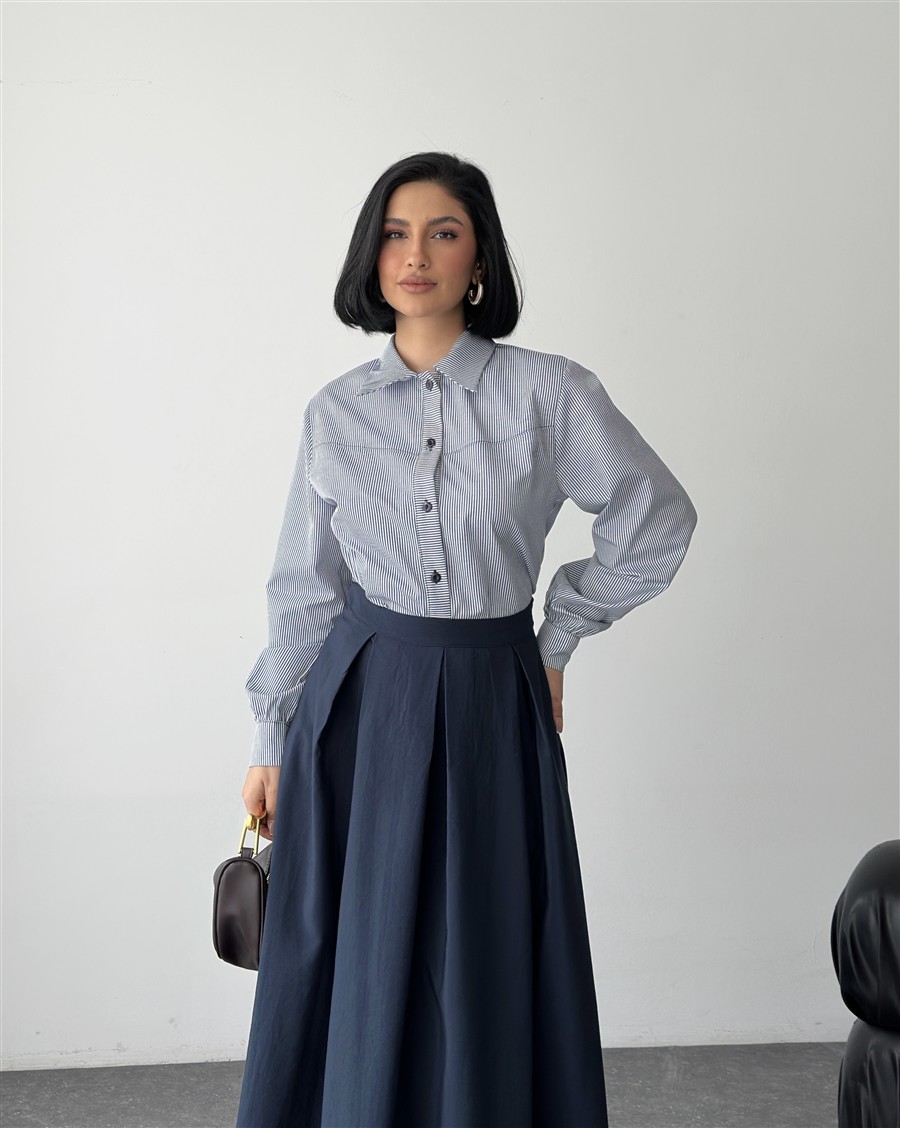 Çizgili Gömlek & Pileli Etek Tesettür Takım RC9024