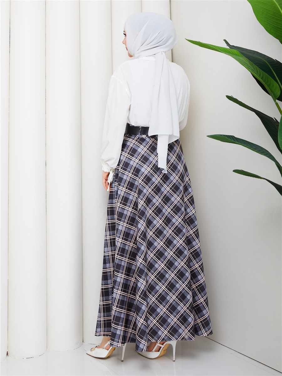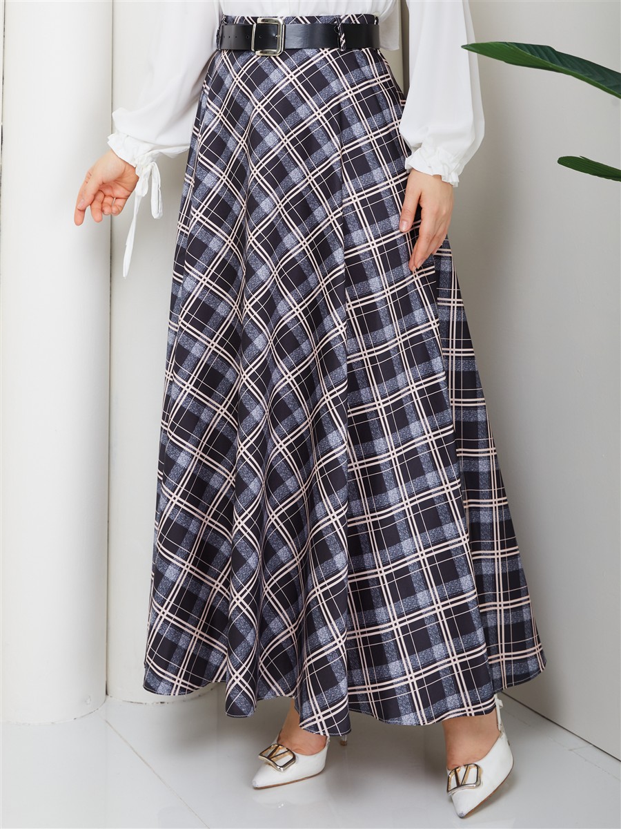 Ekose Desenli Kemerli Etek RC4017