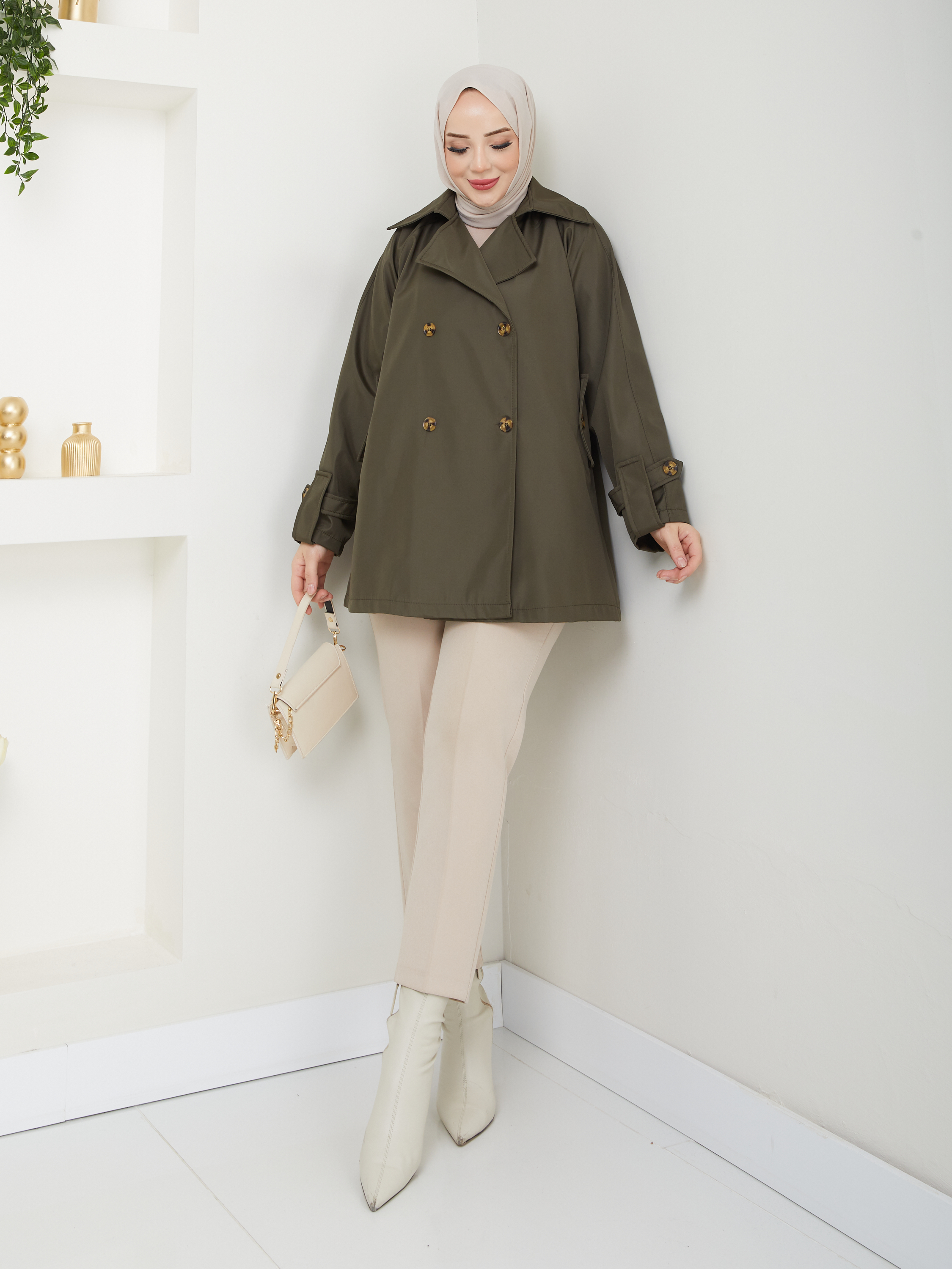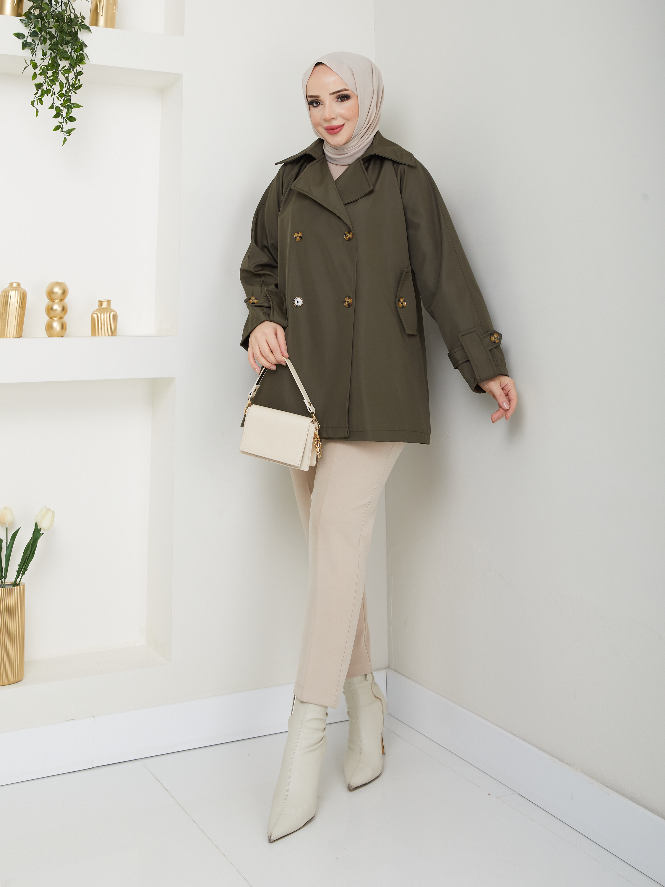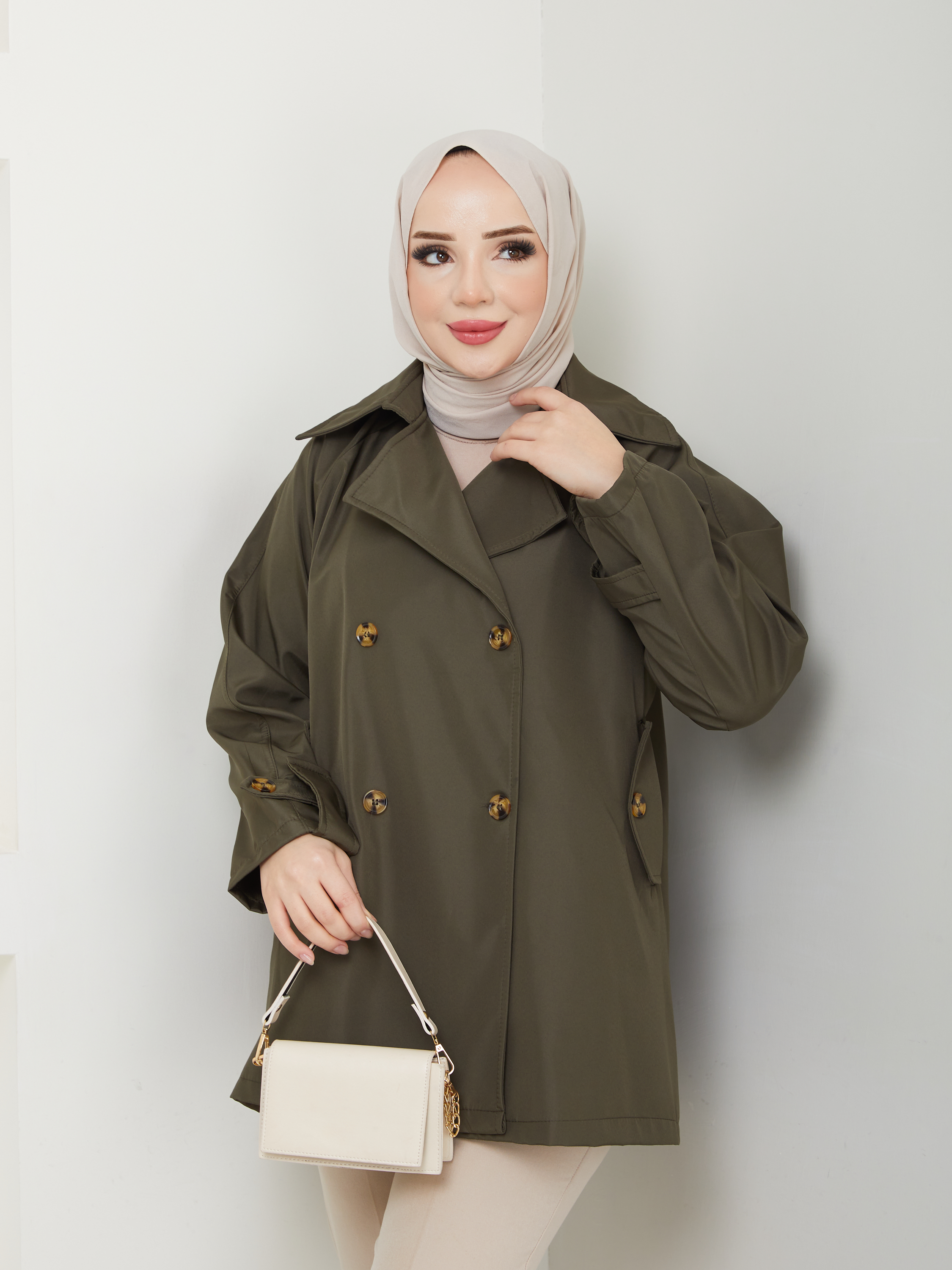 Kadın Oversize Su Geçirmez Kruvaze Yaka Trençkot RC3083