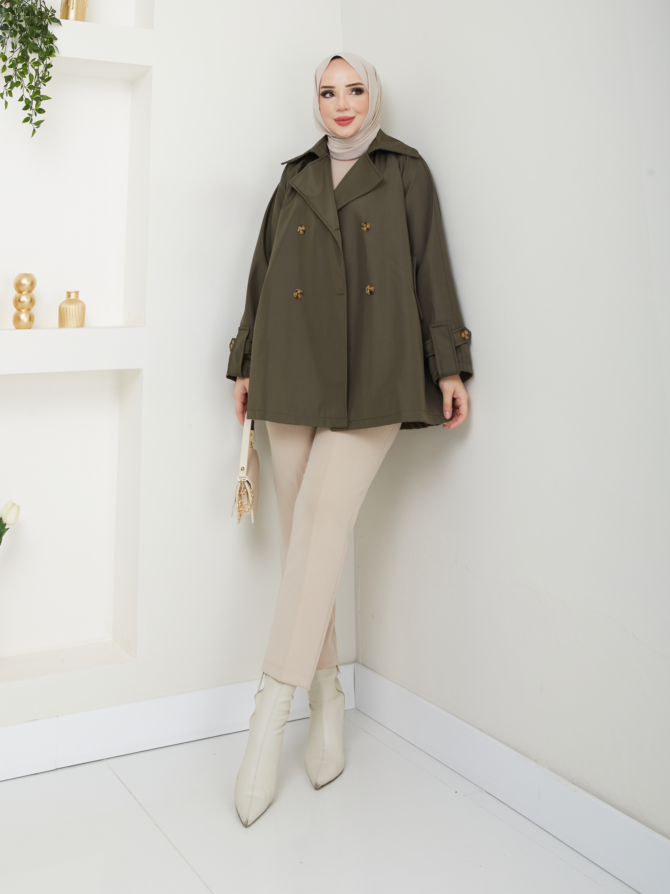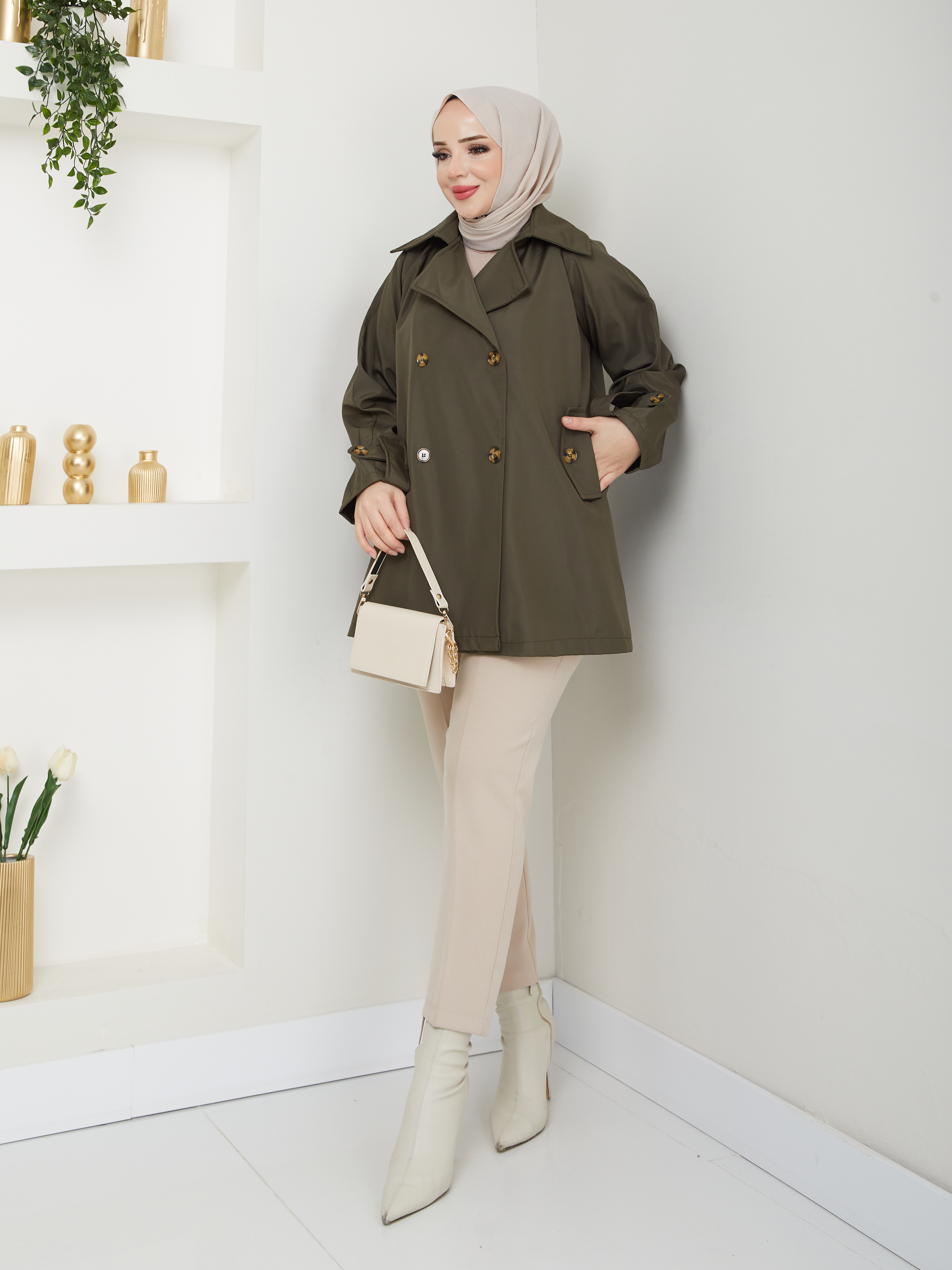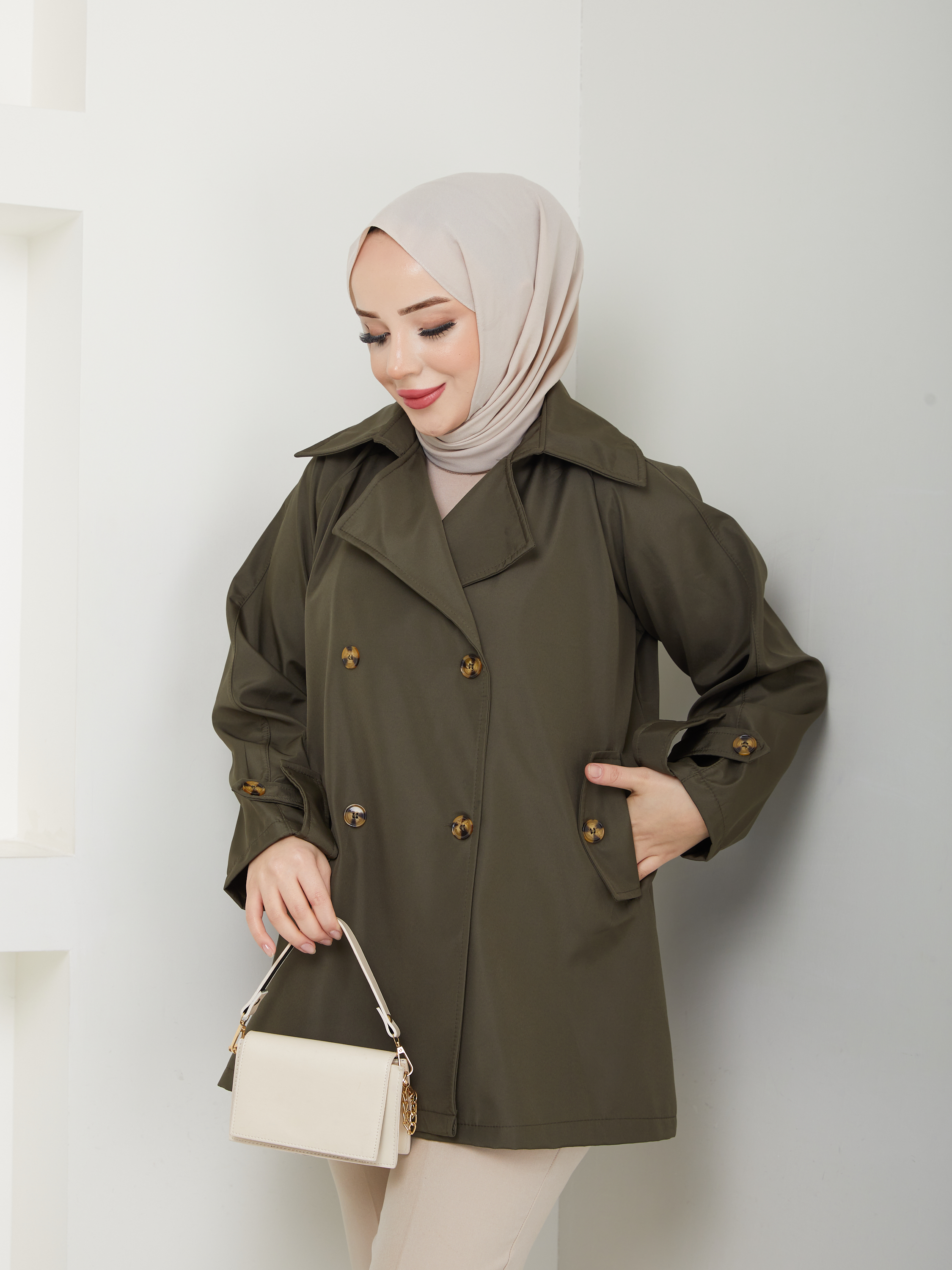Kadın Oversize Su Geçirmez Kruvaze Yaka Trençkot RC3083