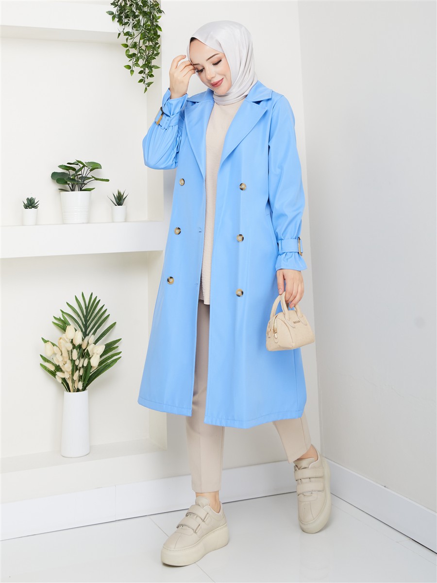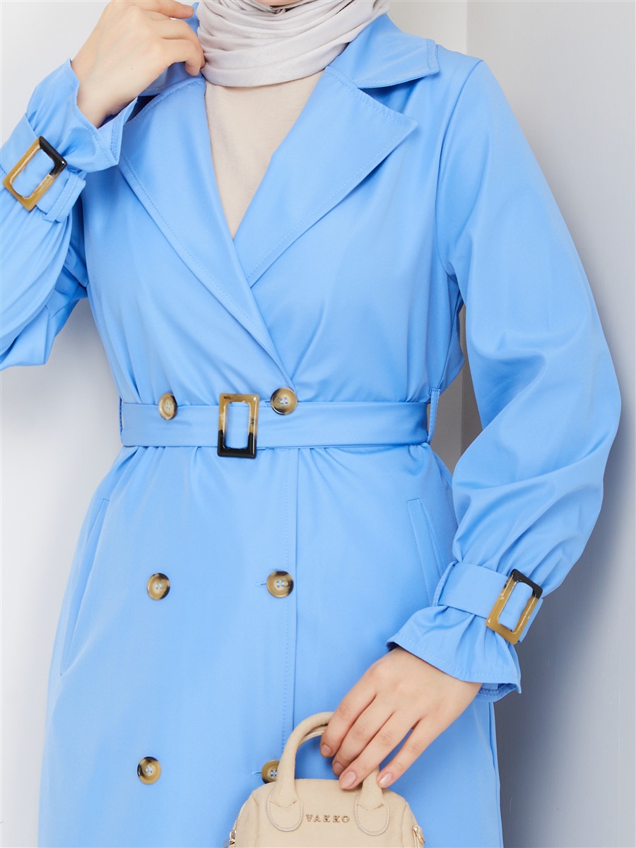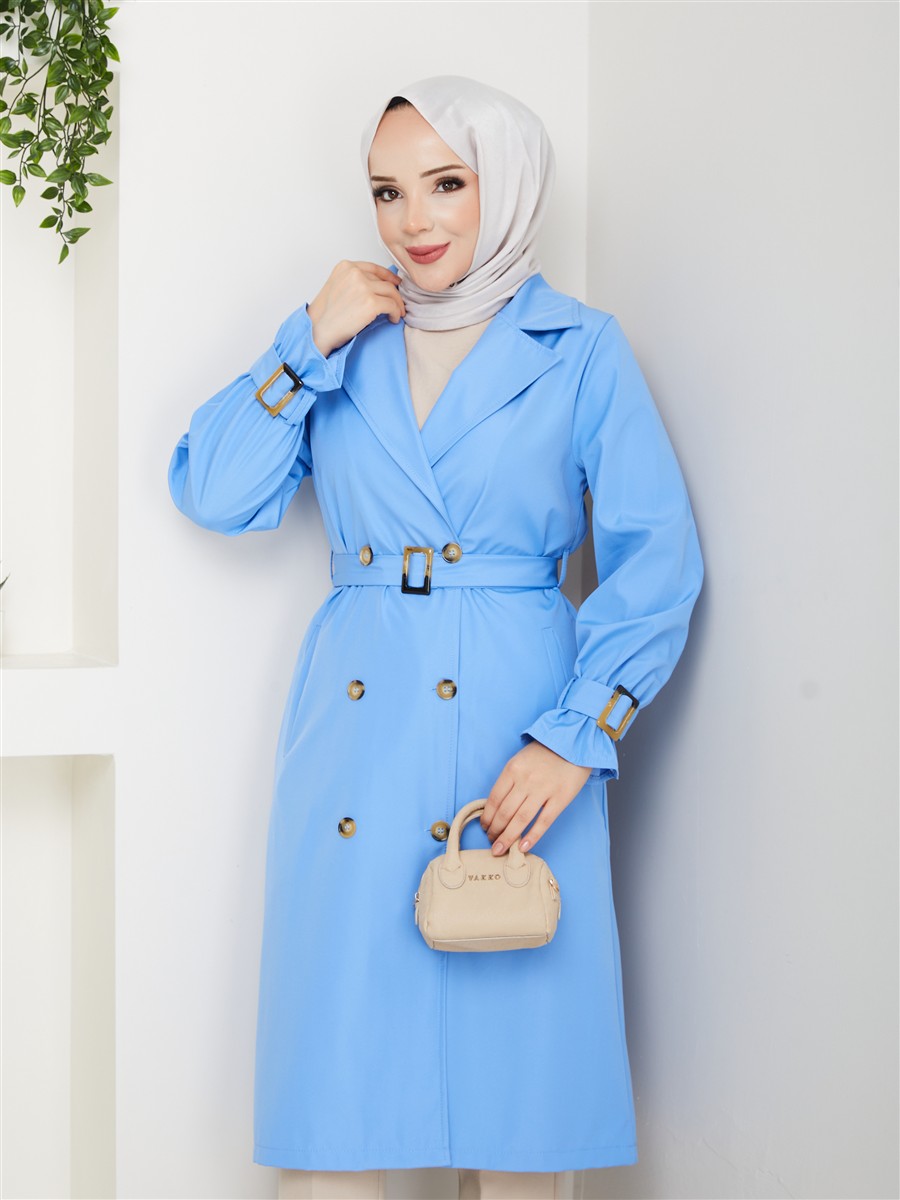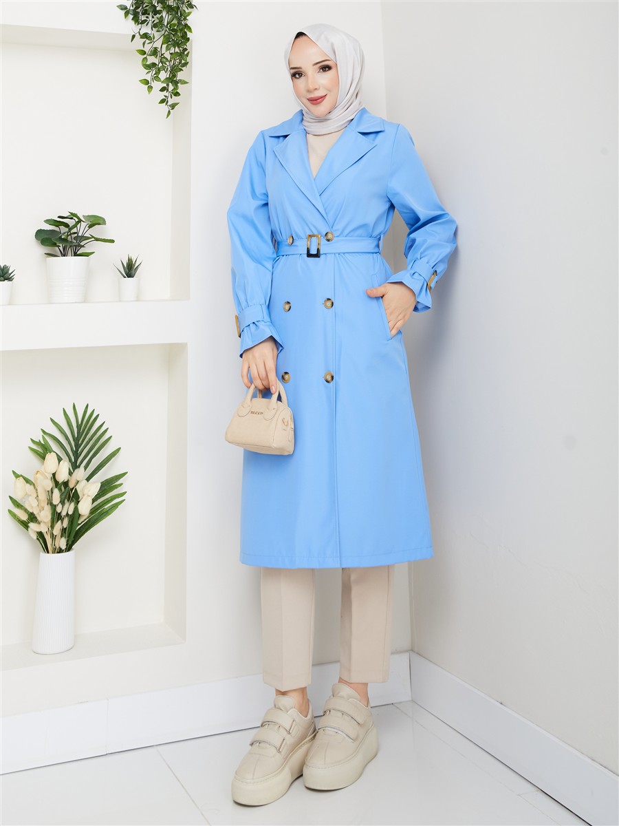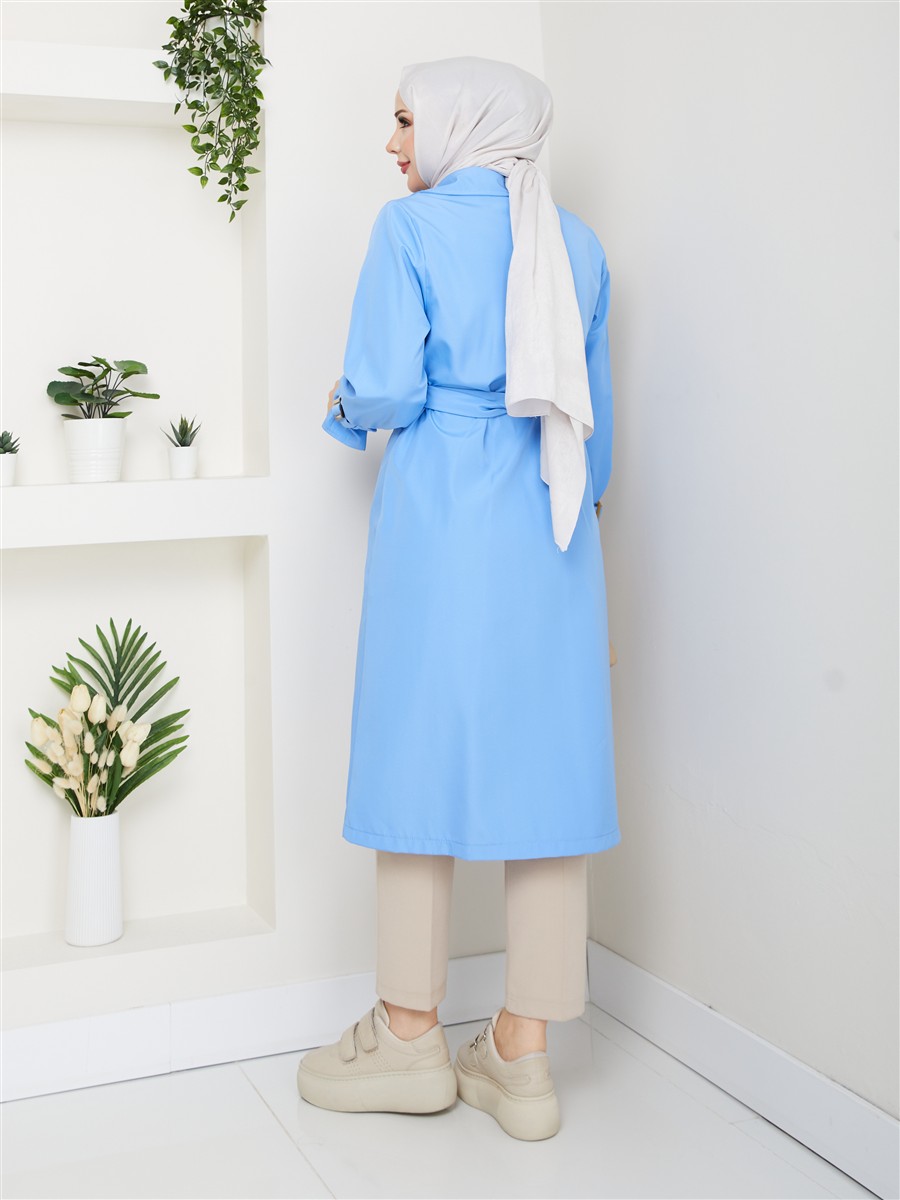 Kruvaze Yaka Kemerli Tesettür Trençkot RC1103013