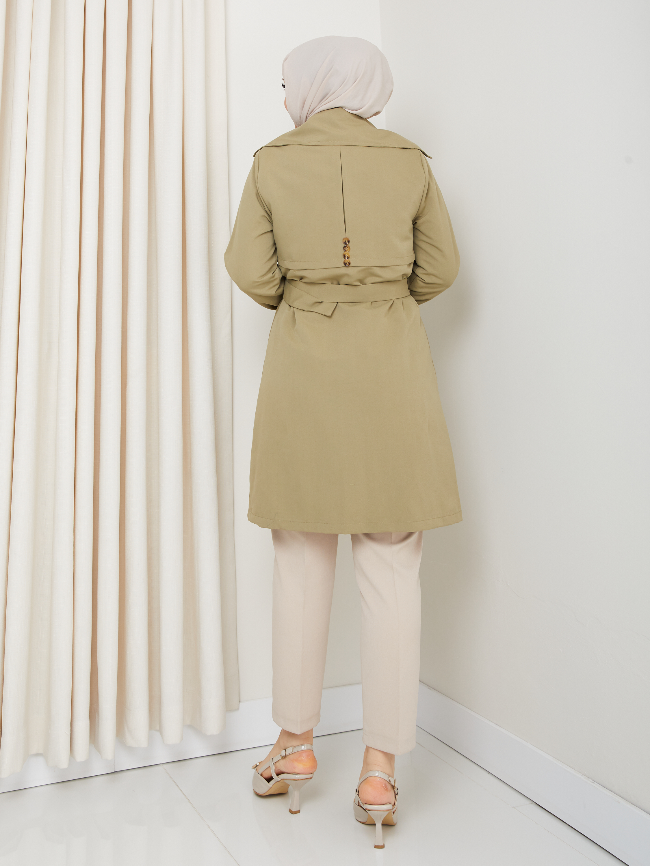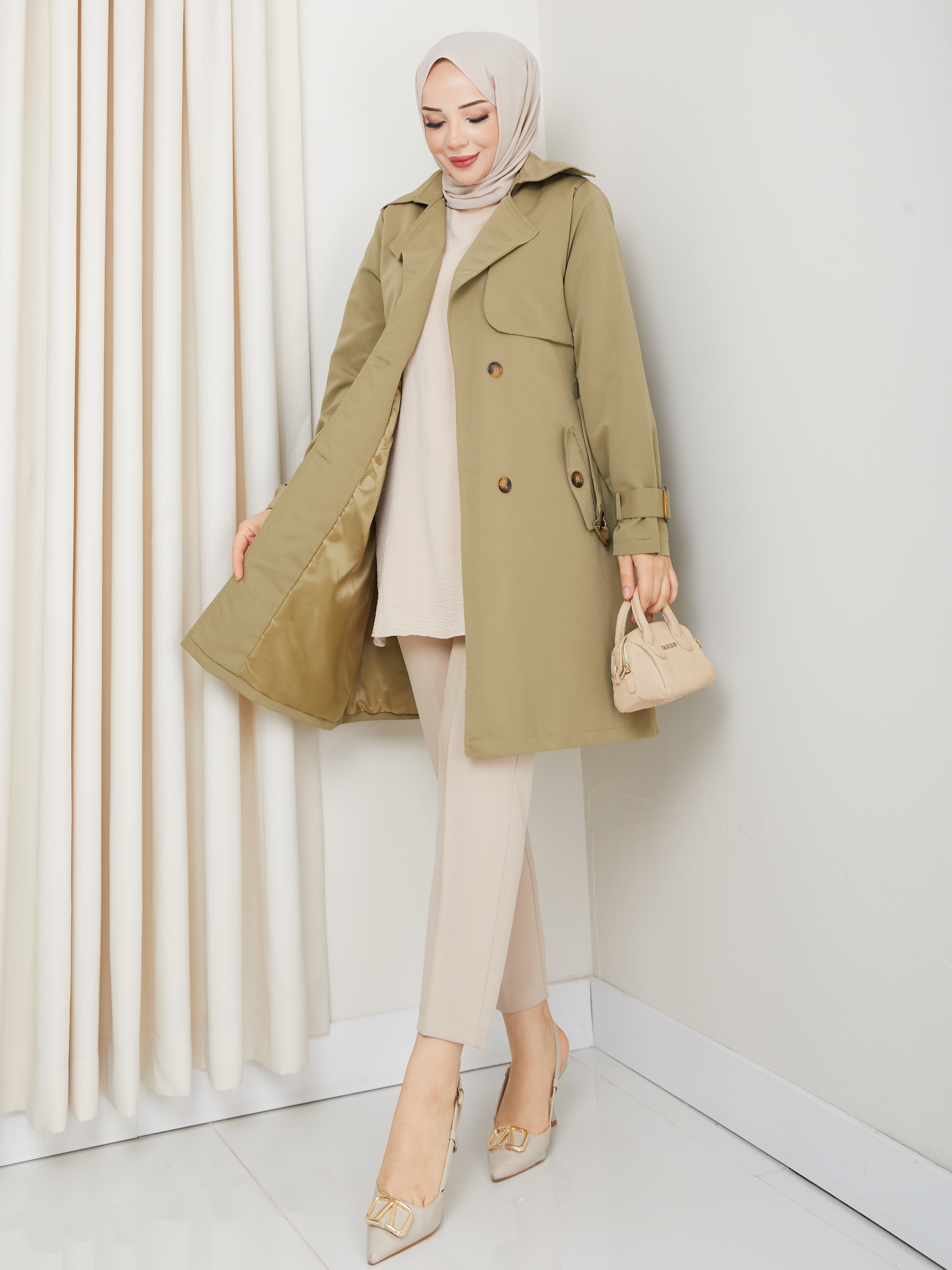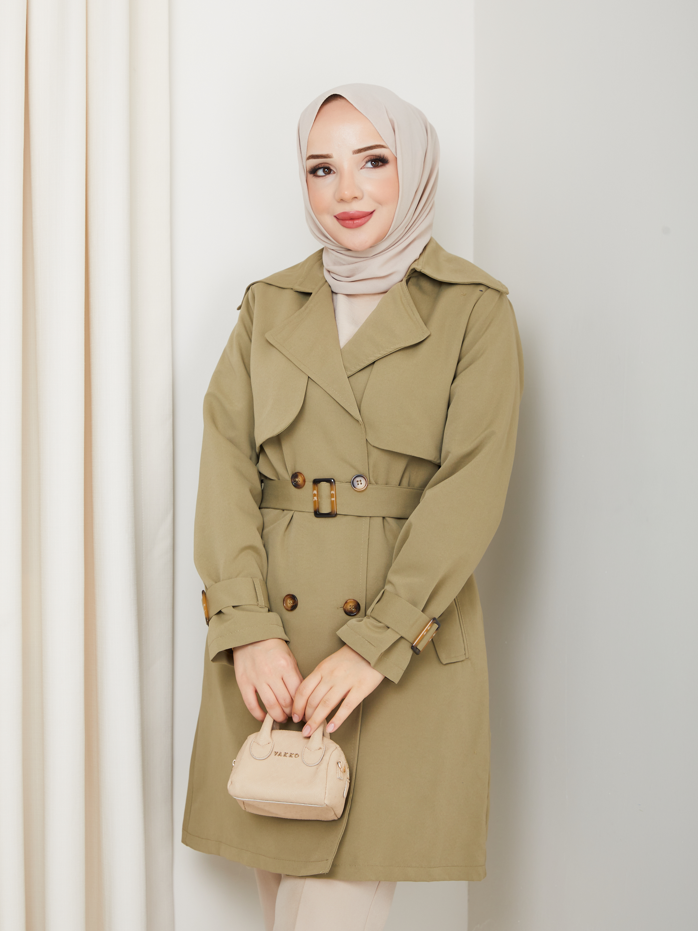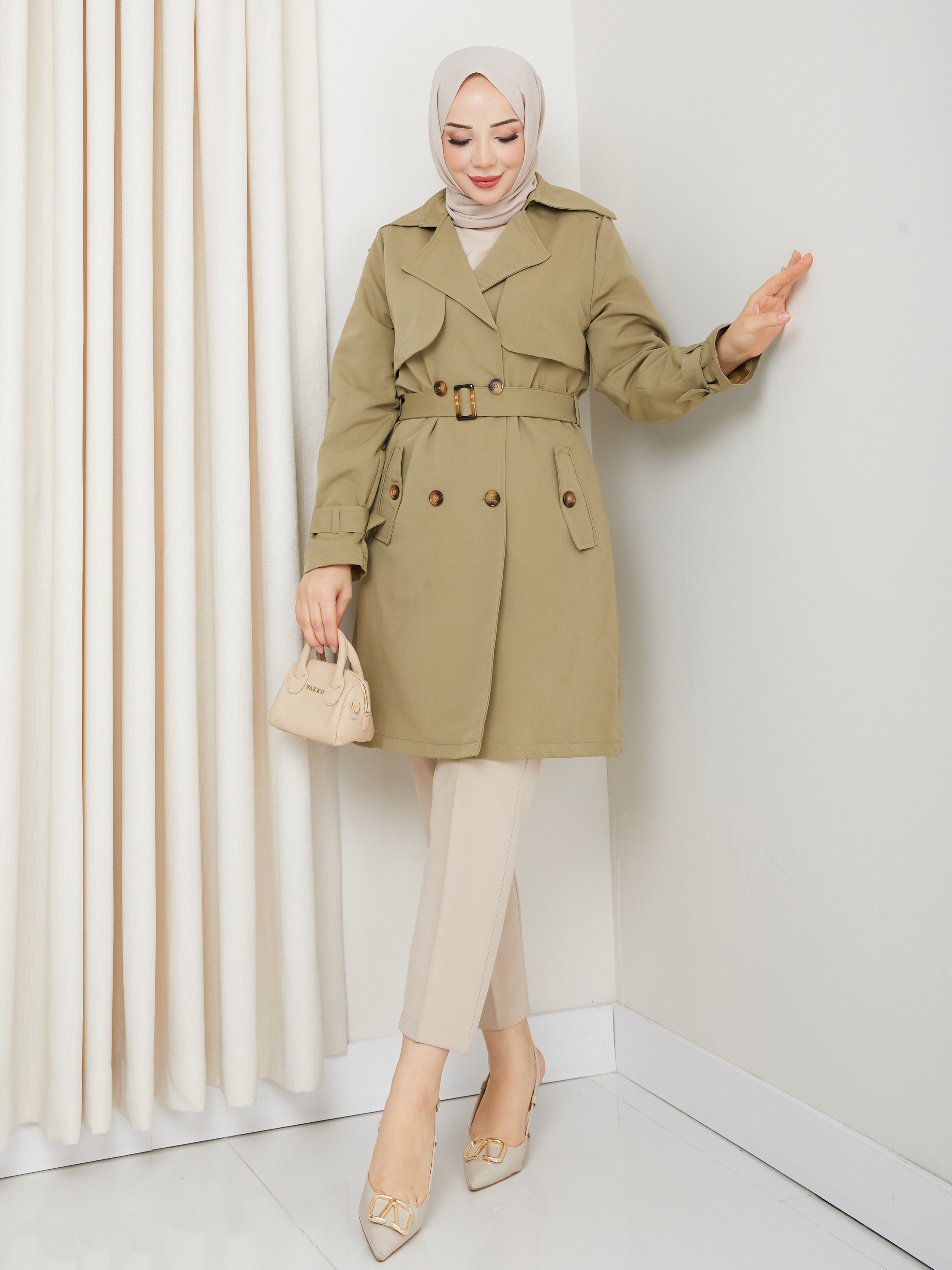 Kruvaze Yaka Su Geçirmez Astarlı Kadın Trençkot RC3089