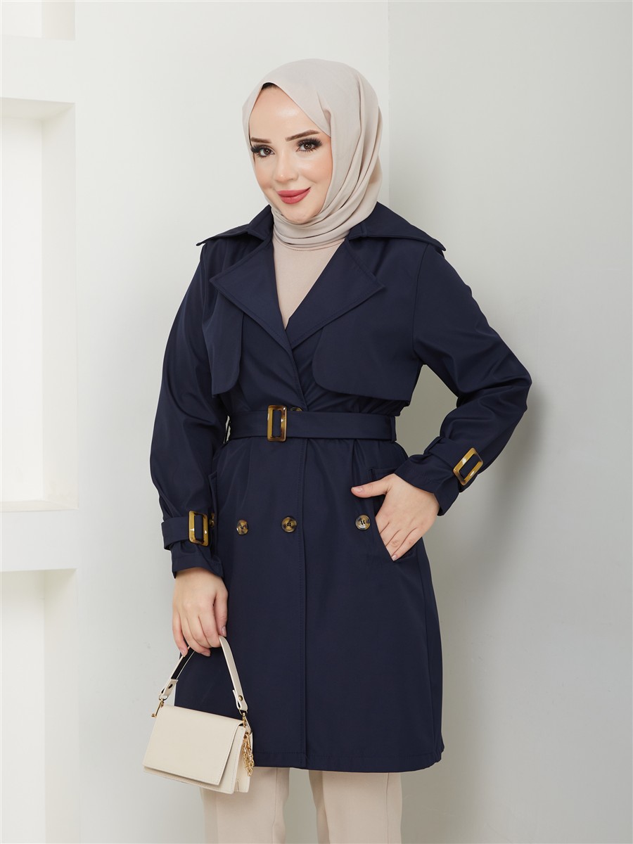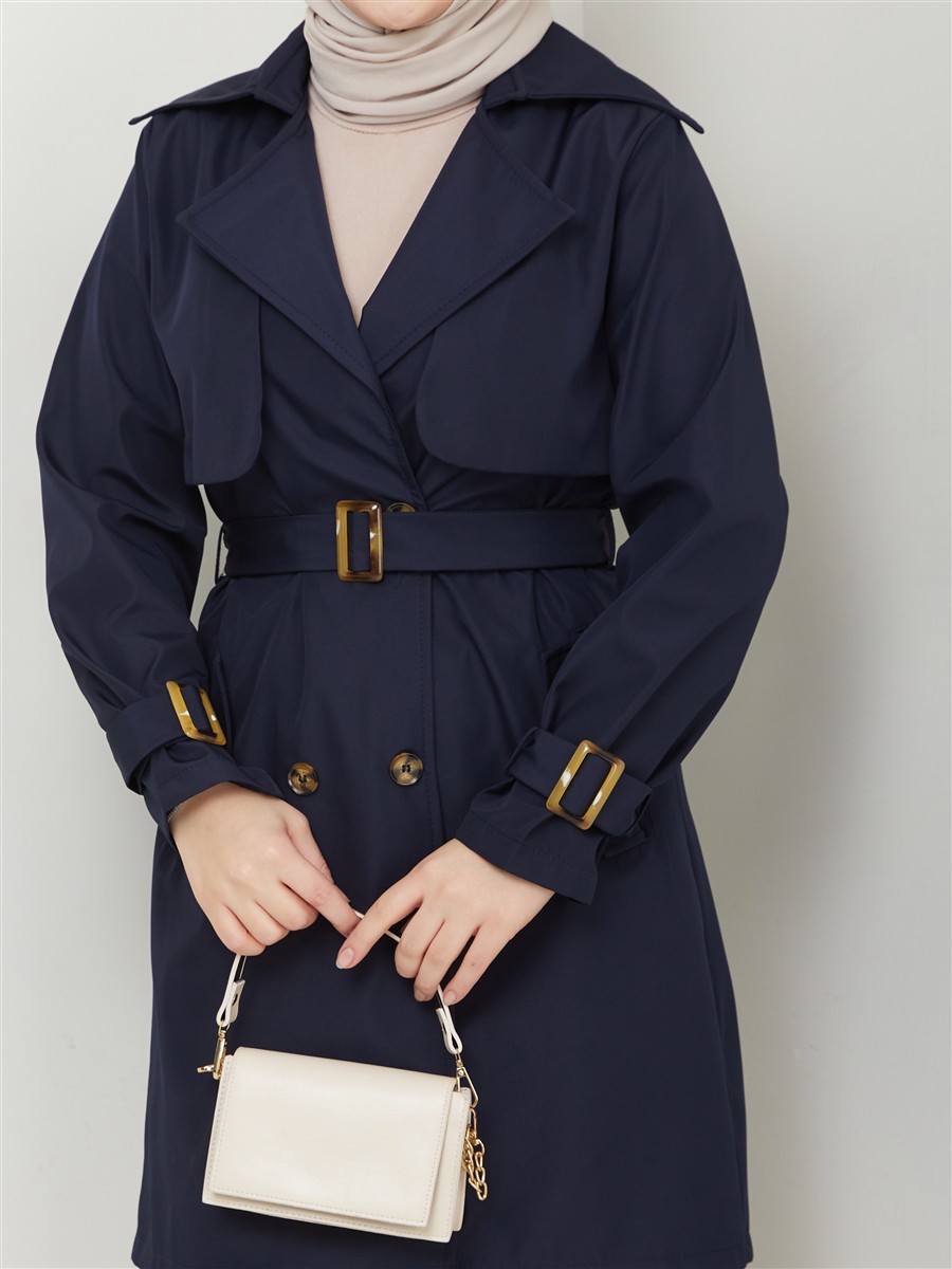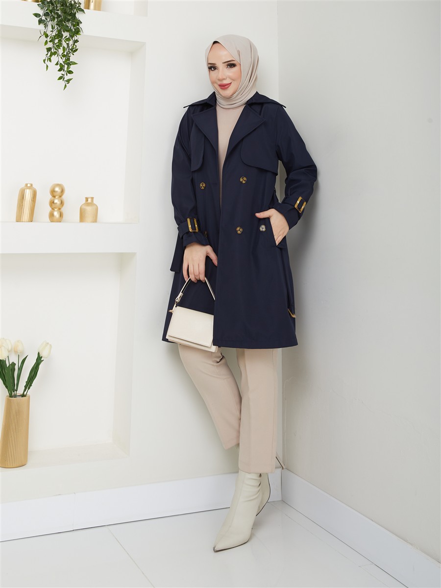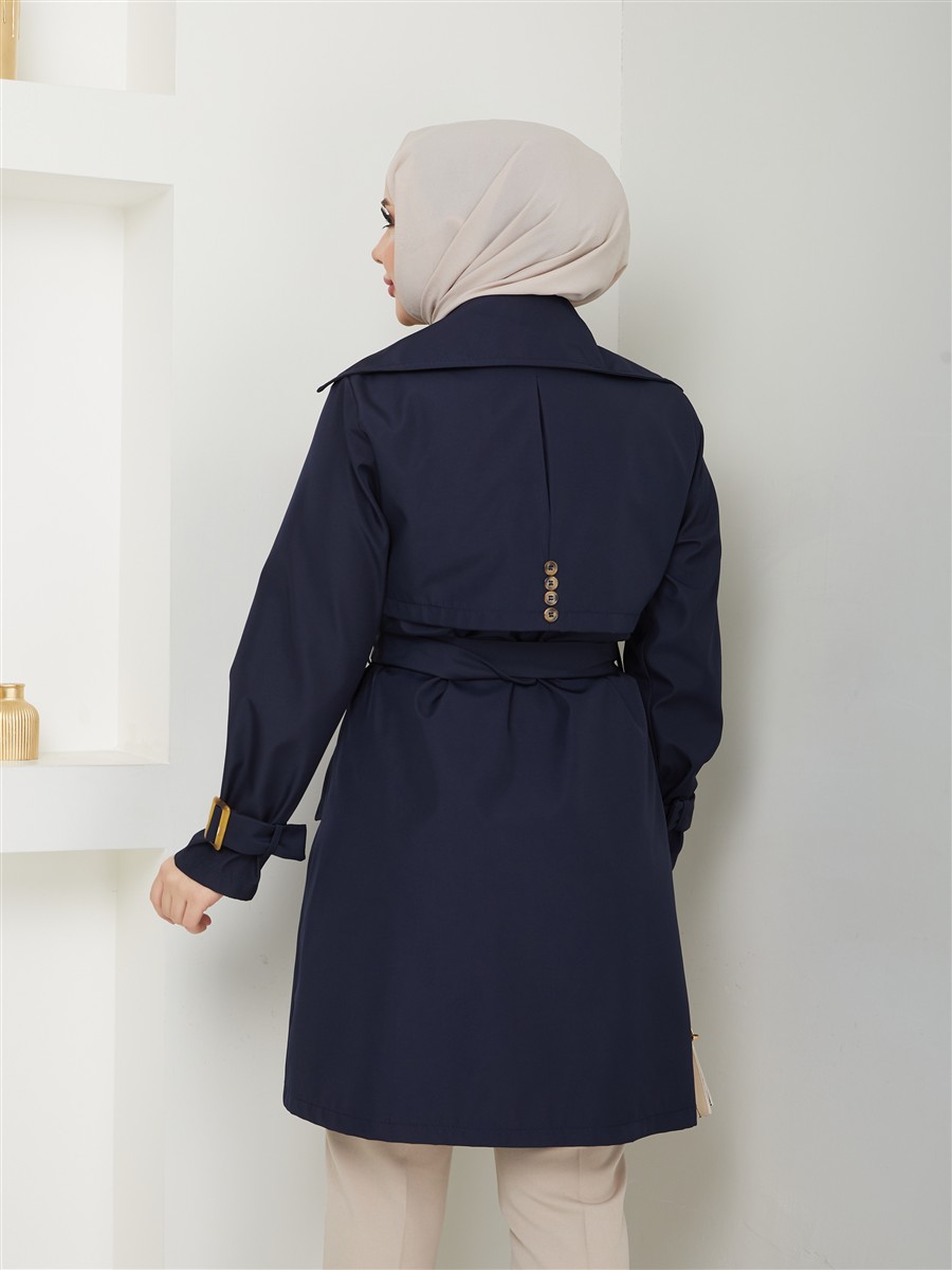 Kruvaze Yaka Su Geçirmez Kadın Trençkot RC3082
