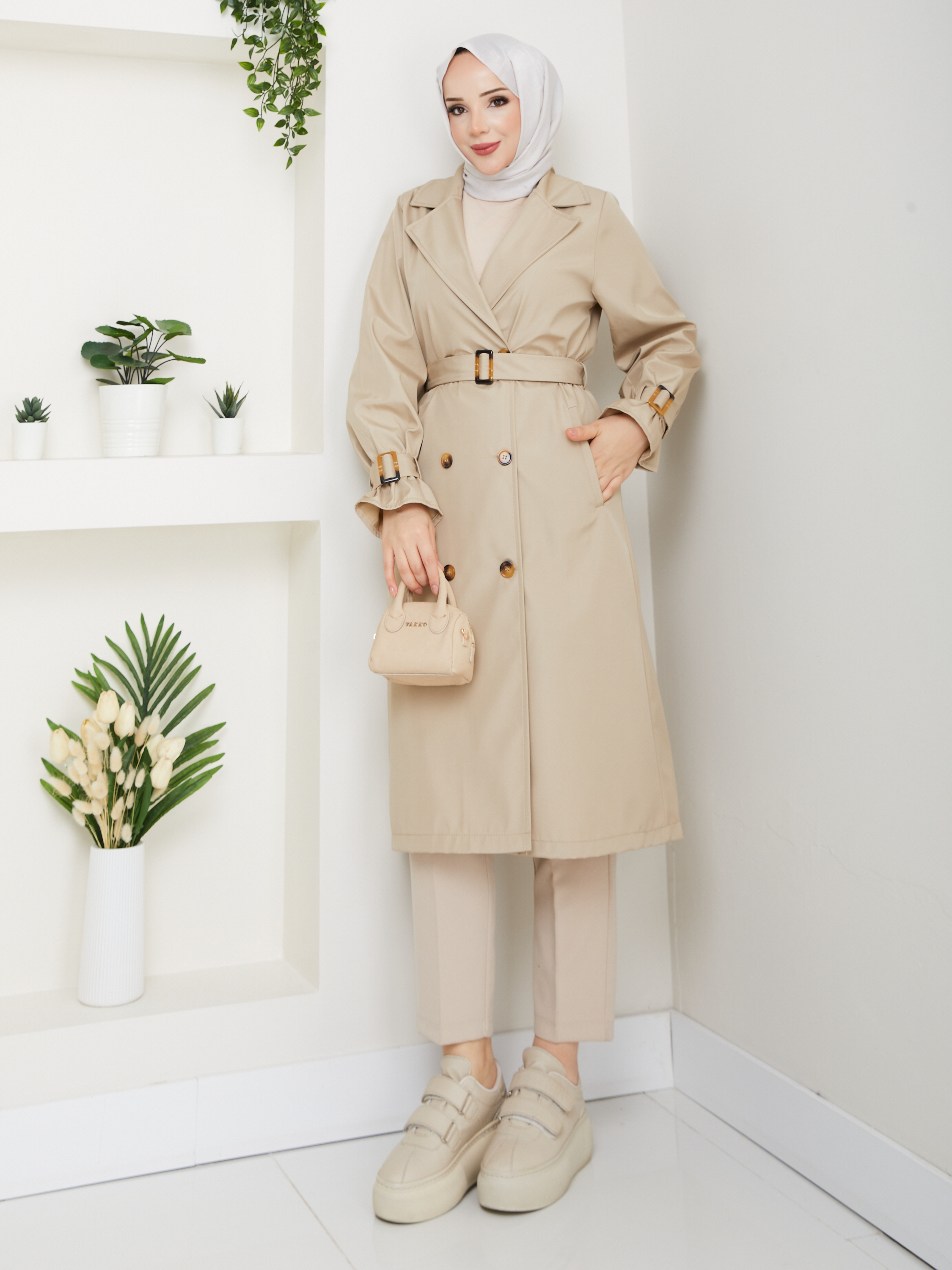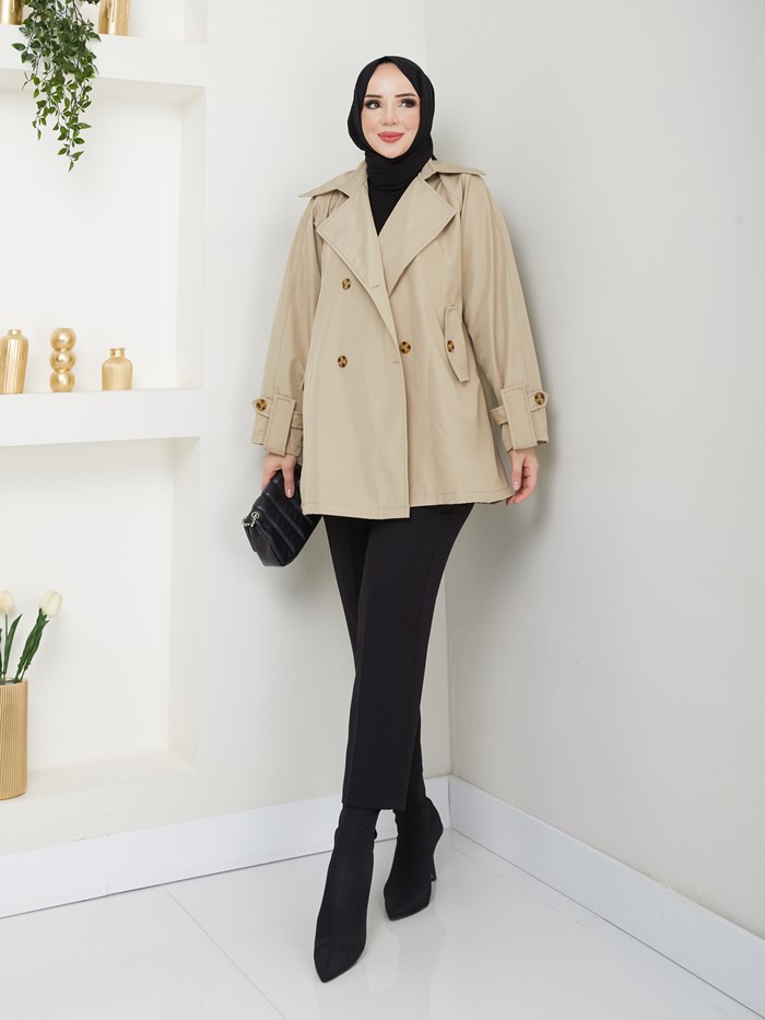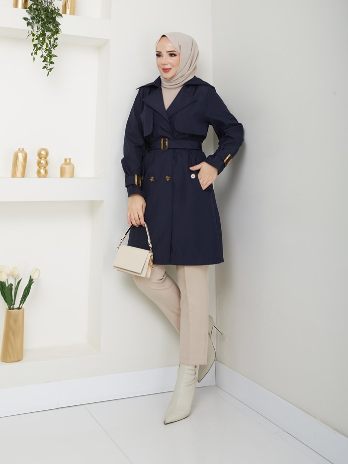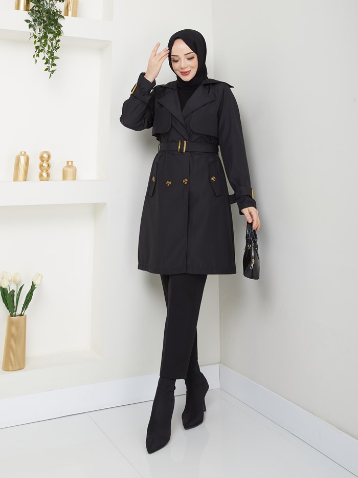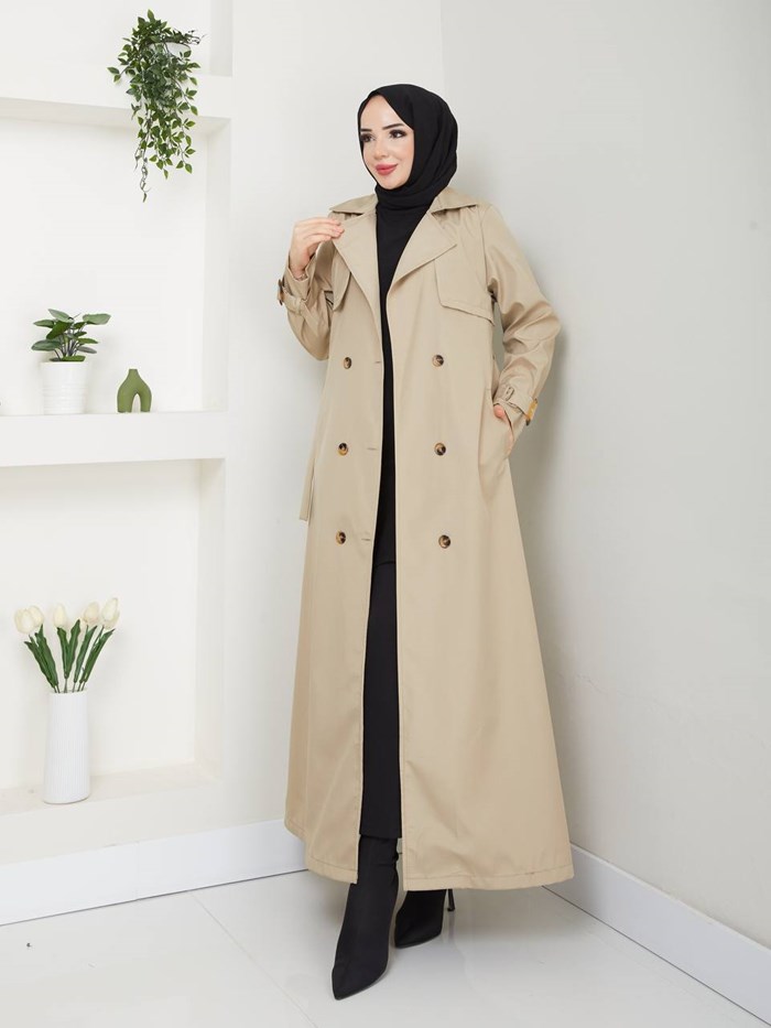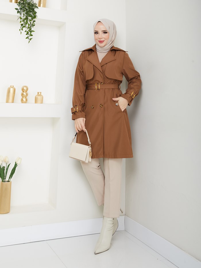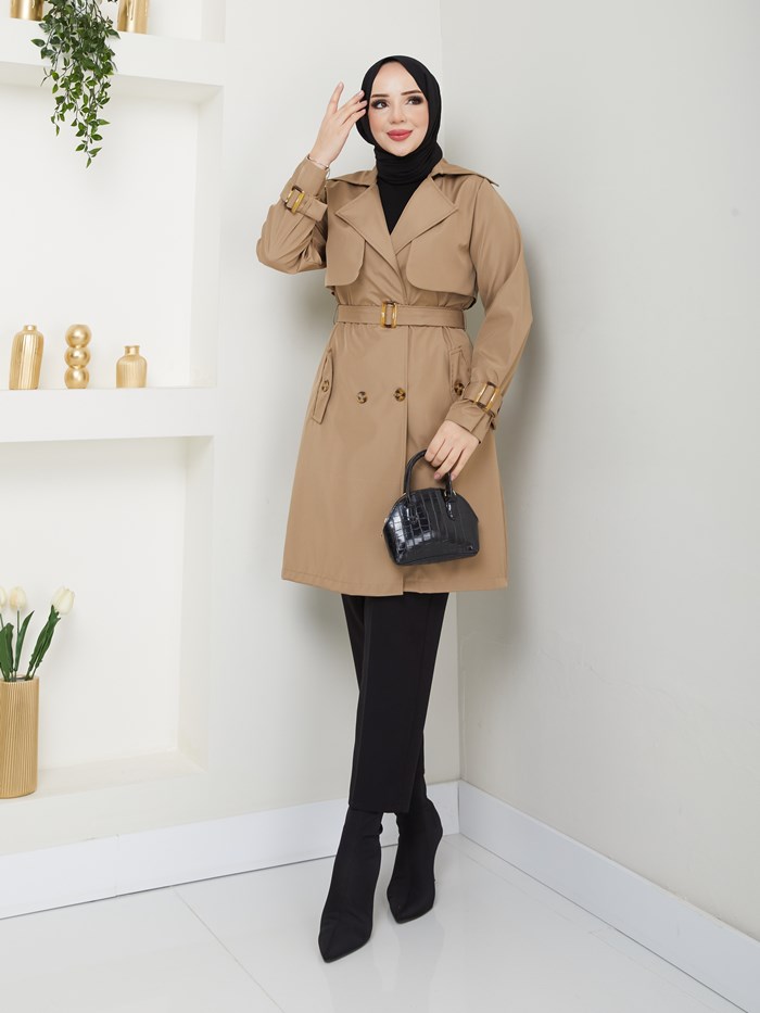 Kruvaze Yaka Su Geçirmez Kadın Trençkot RC3082