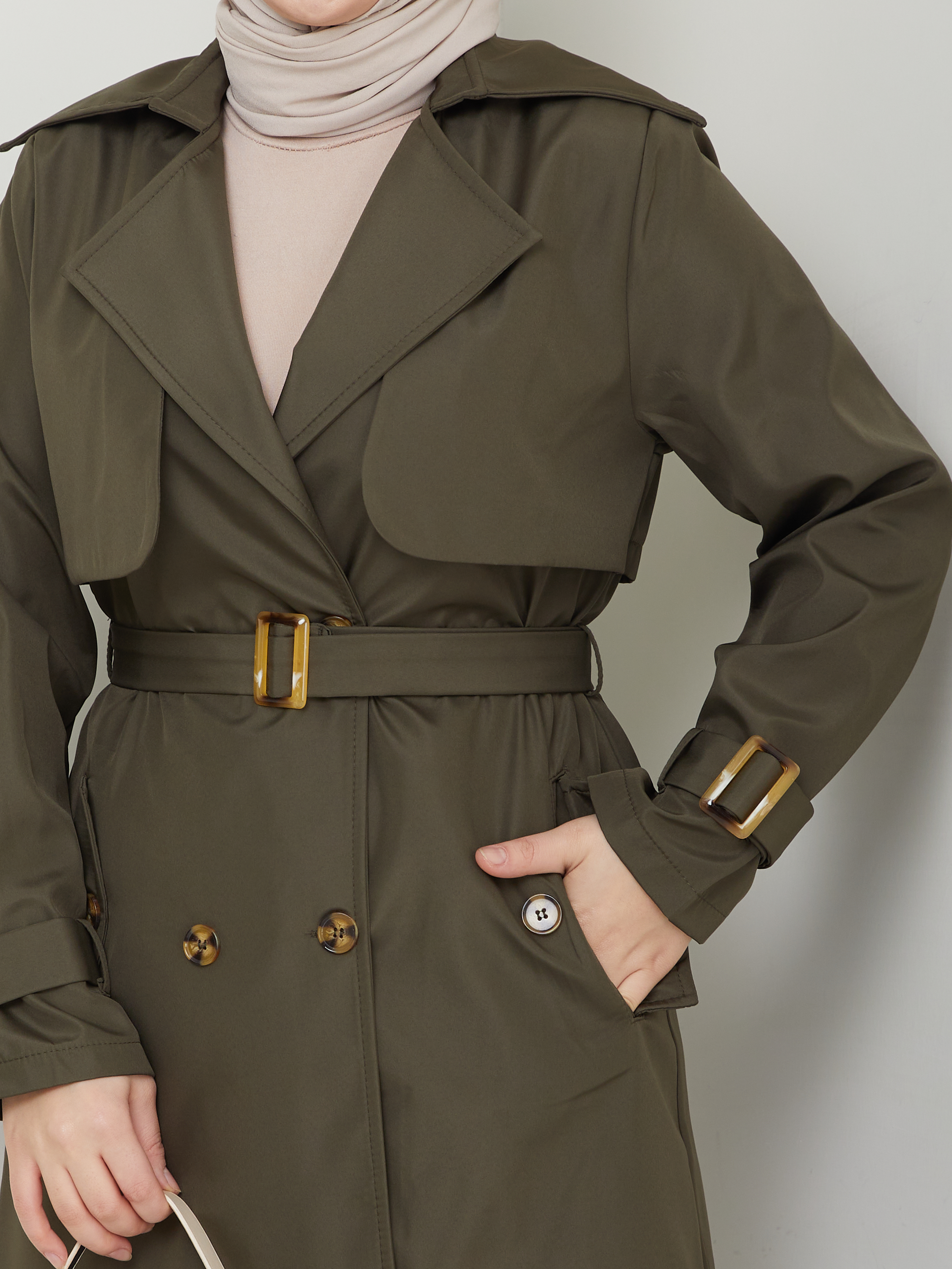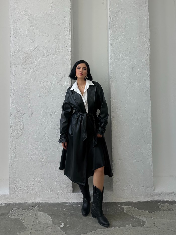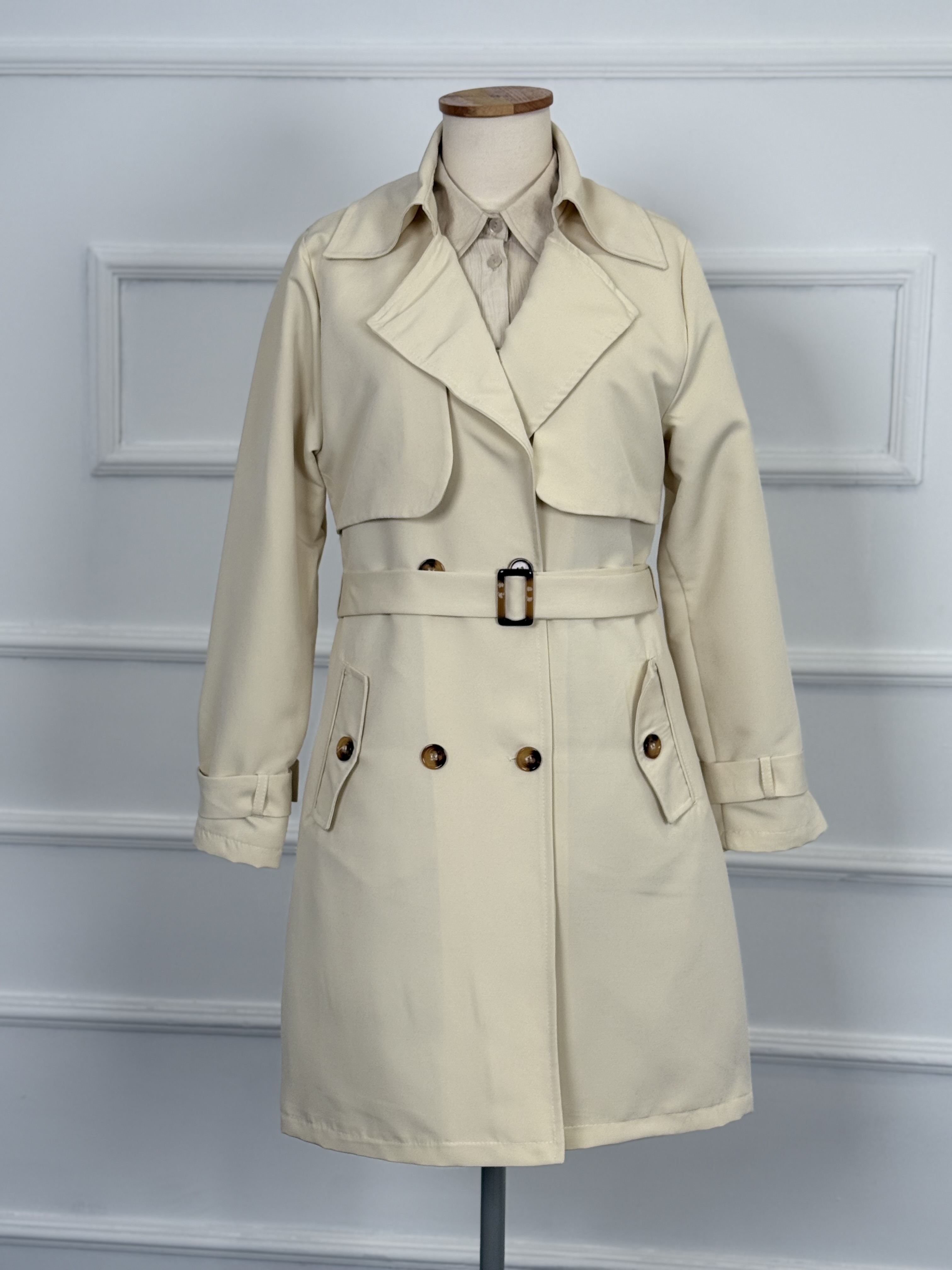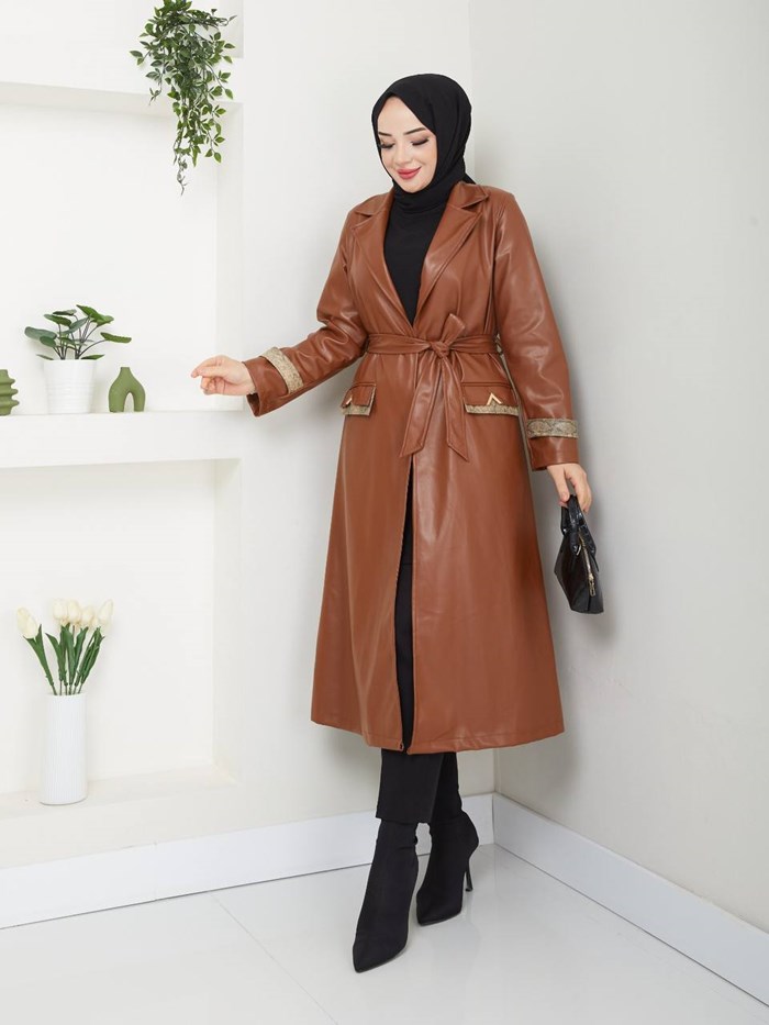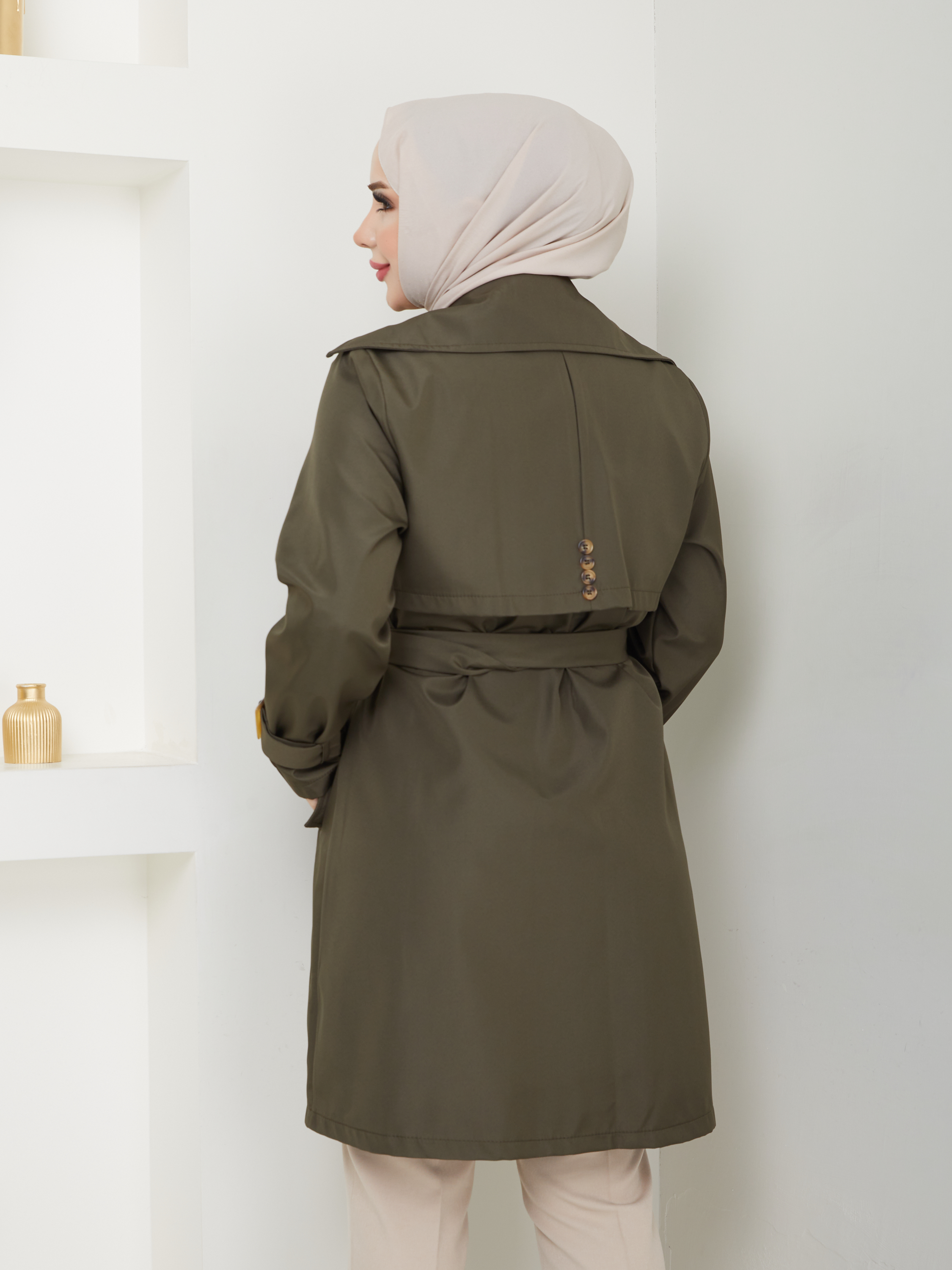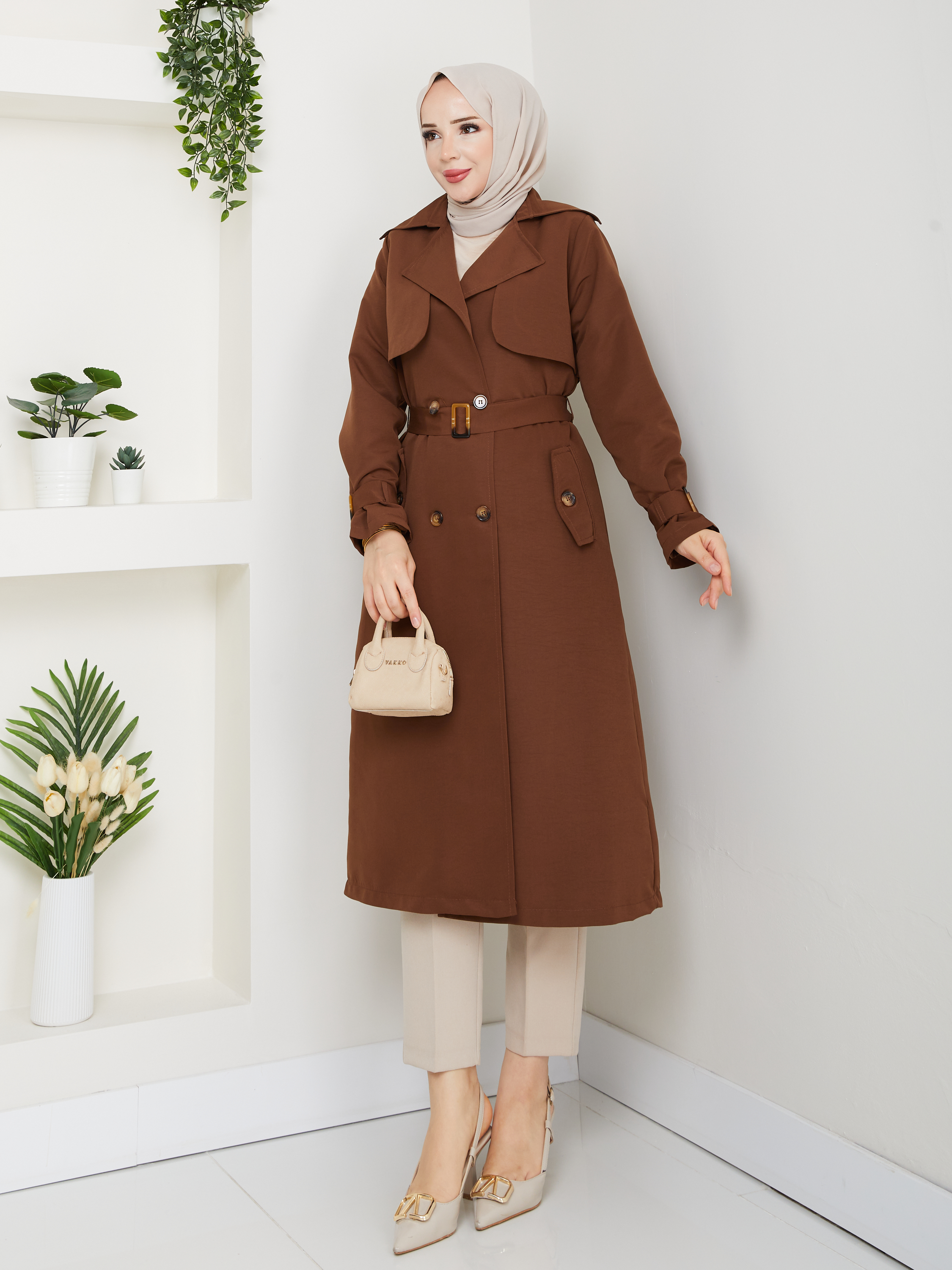 Kruvaze Yaka Su Geçirmez Kadın Trençkot RC3082