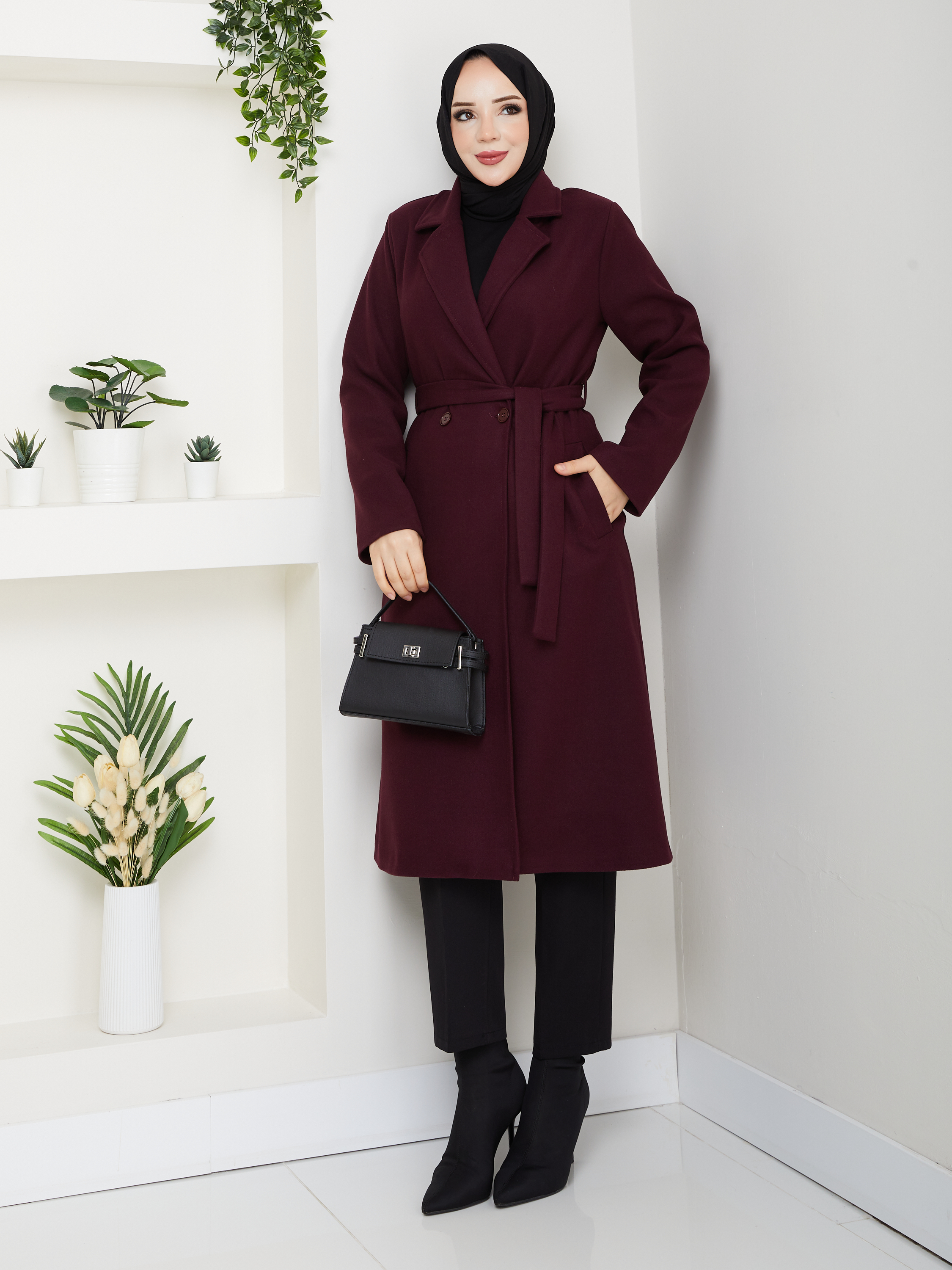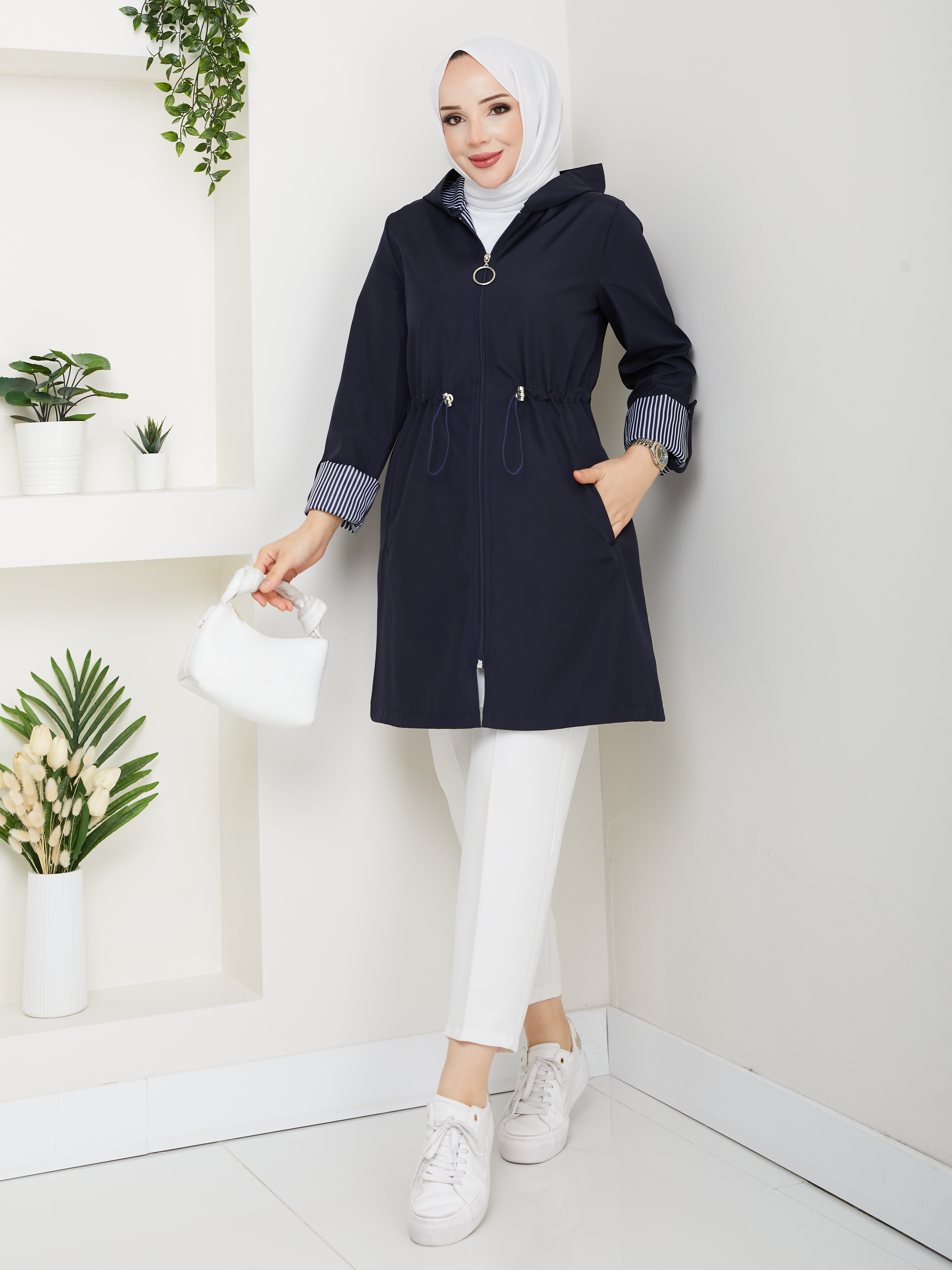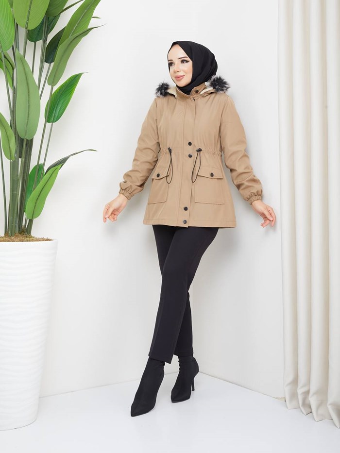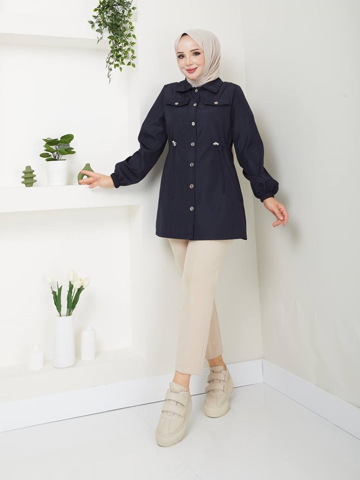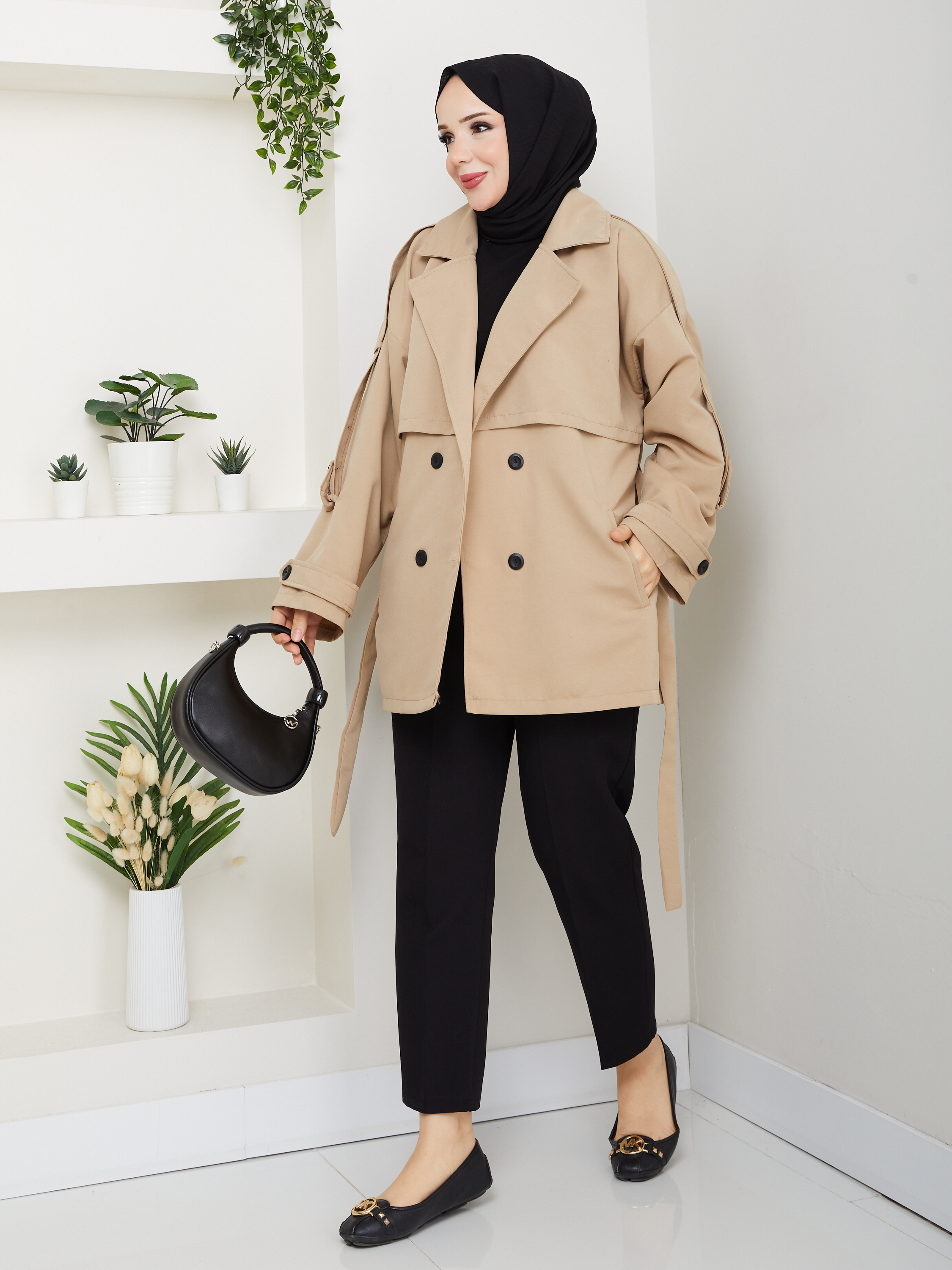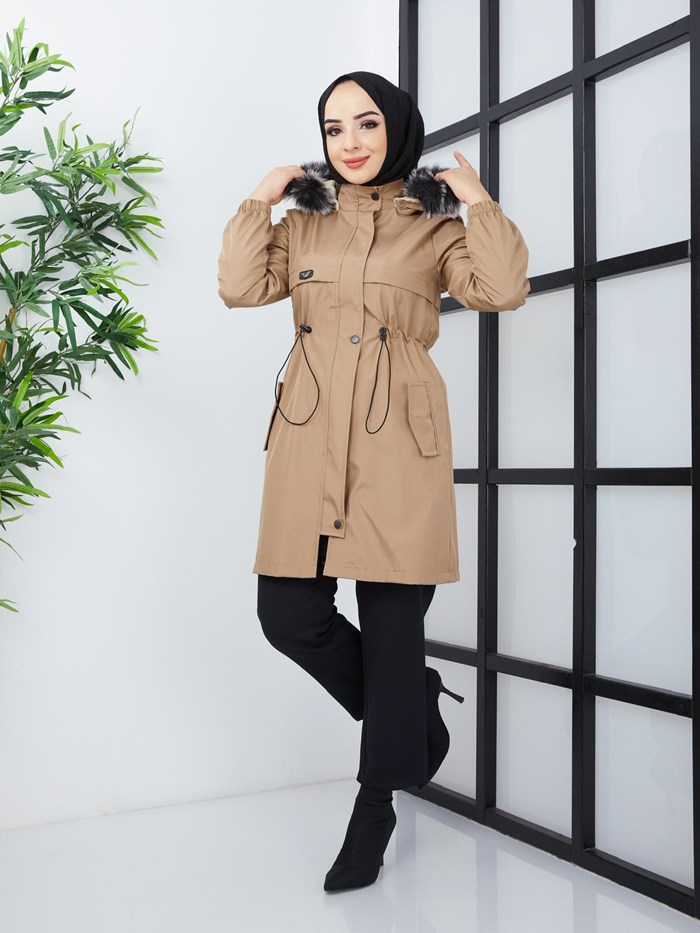 Kruvaze Yaka Su Geçirmez Kadın Trençkot RC3082