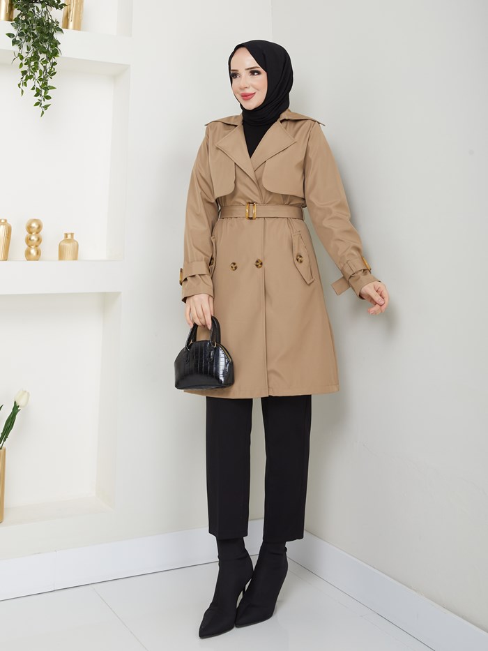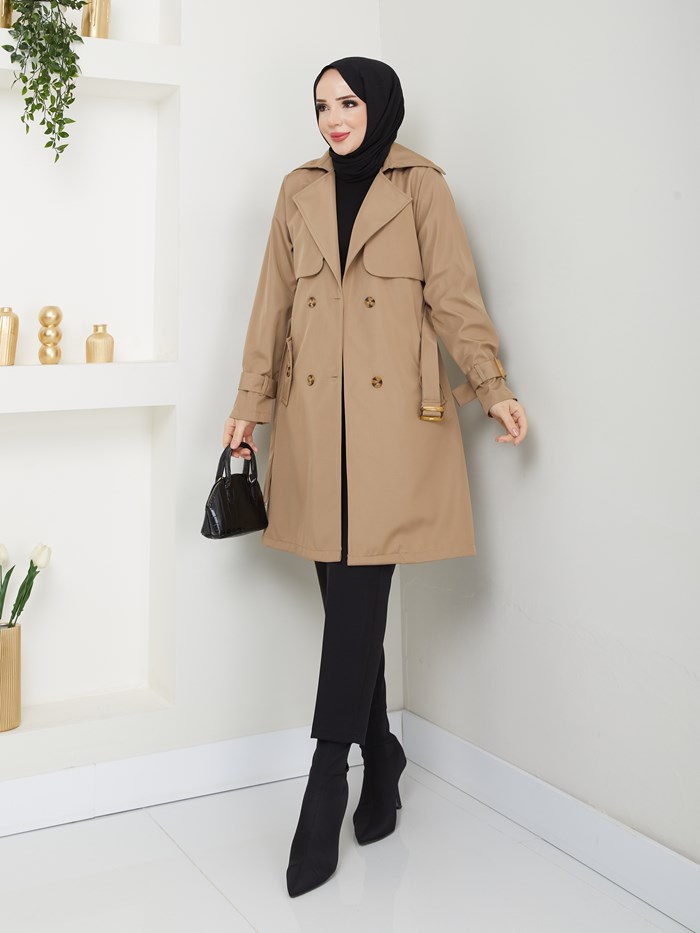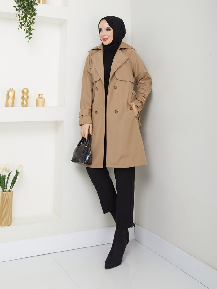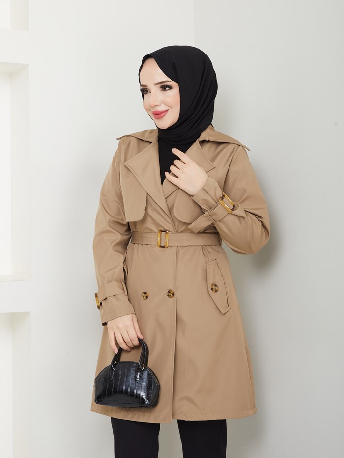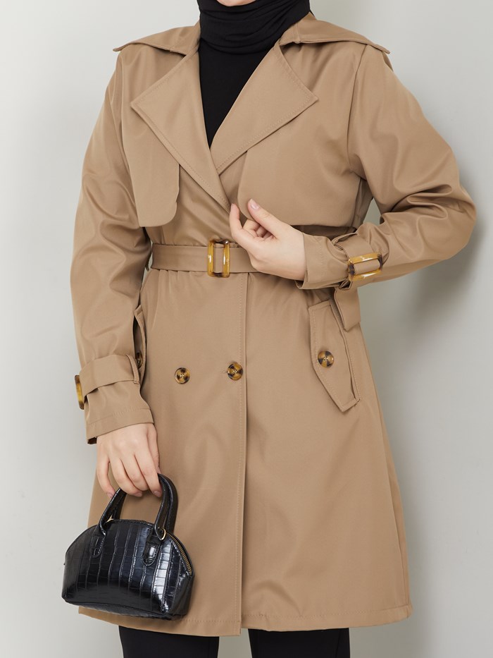 Kruvaze Yaka Su Geçirmez Kadın Trençkot RC3082