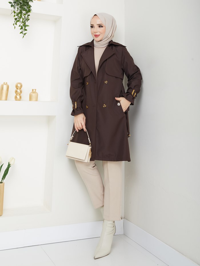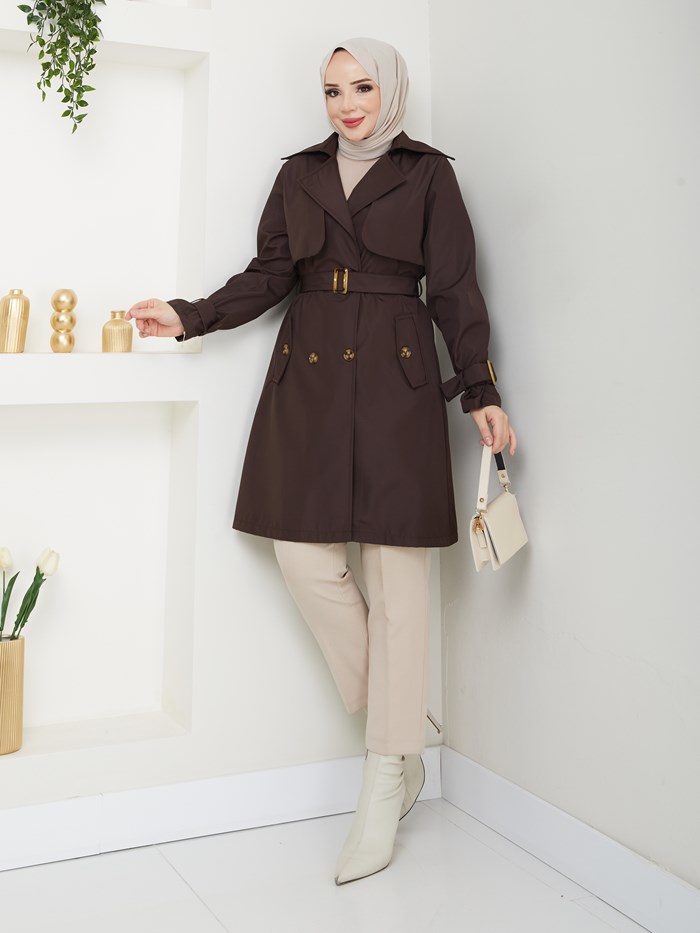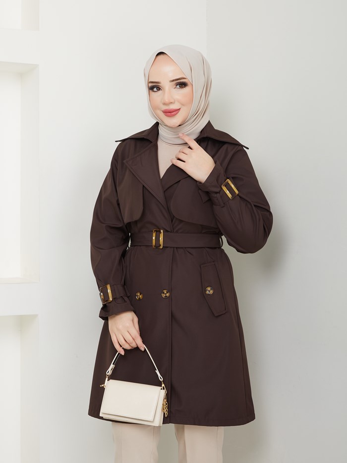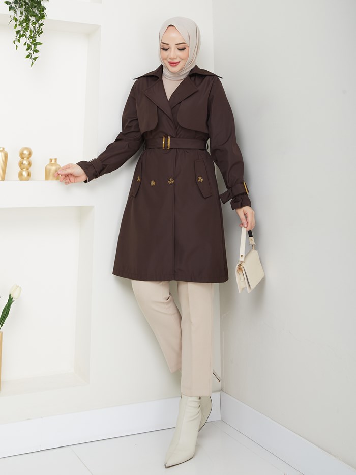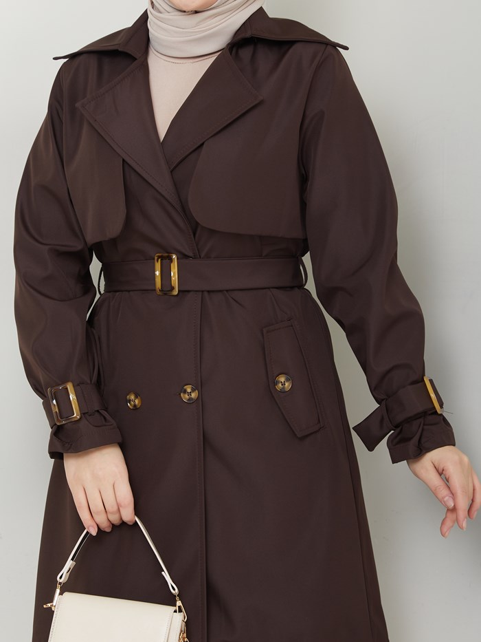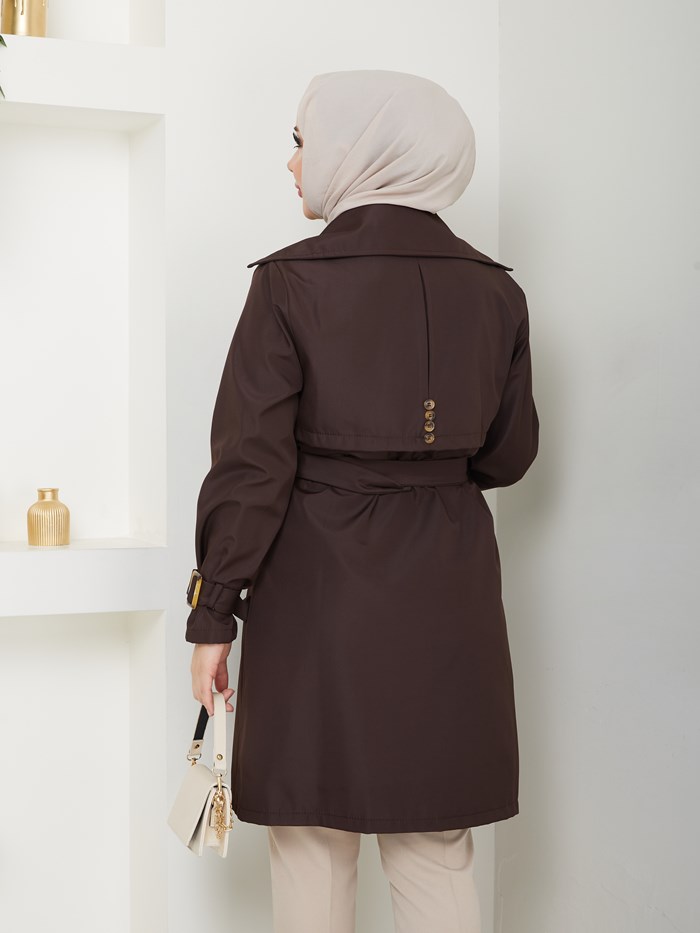Kruvaze Yaka Su Geçirmez Kadın Trençkot RC3082