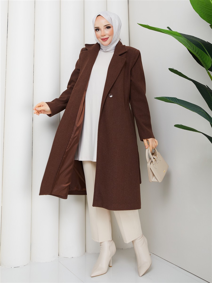 Kuşaklı Astarlı Kaşe Kaban RC3112