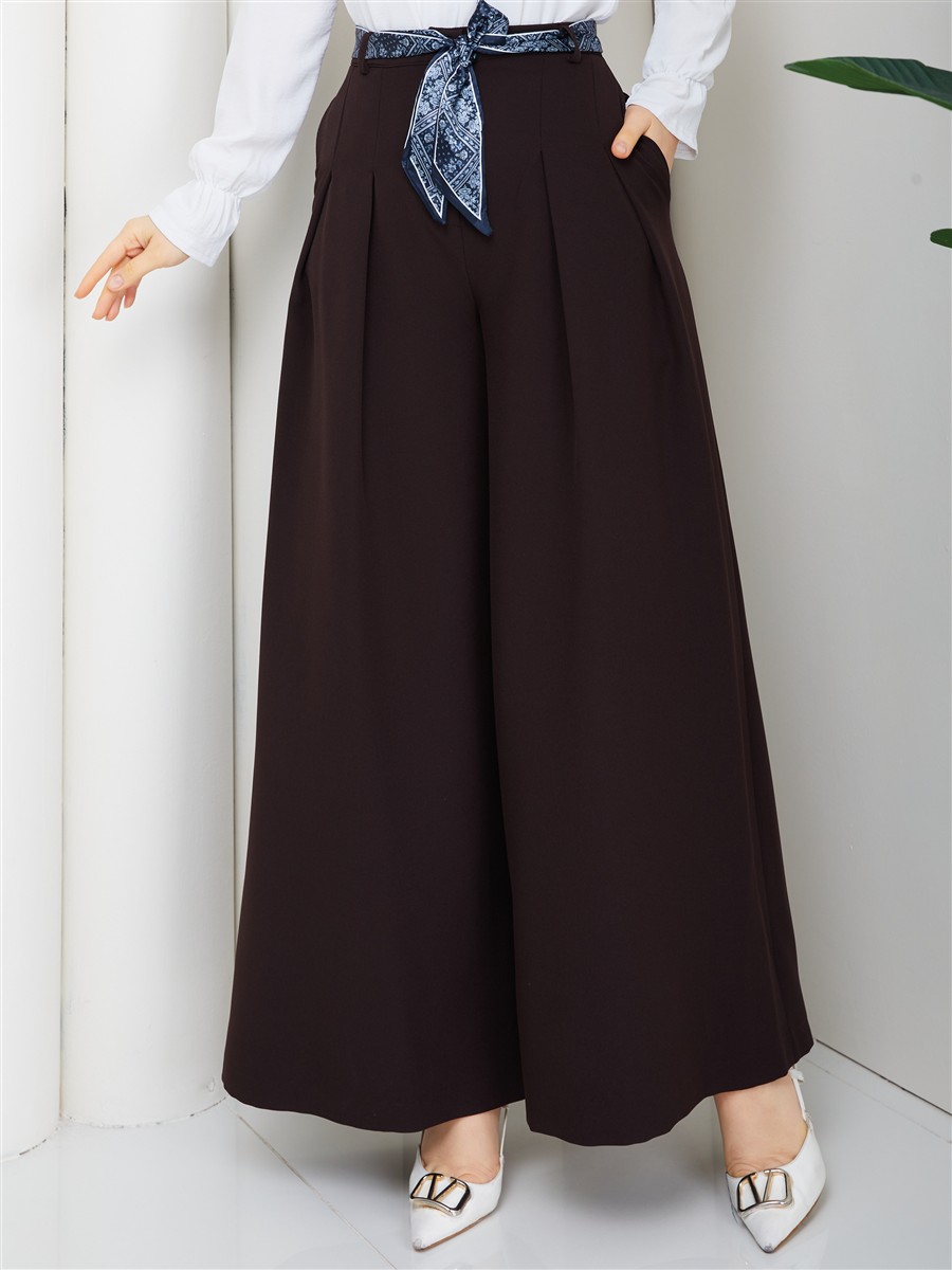 Pileli Kuşaklı Yüksek Bel Pantolon RC7000