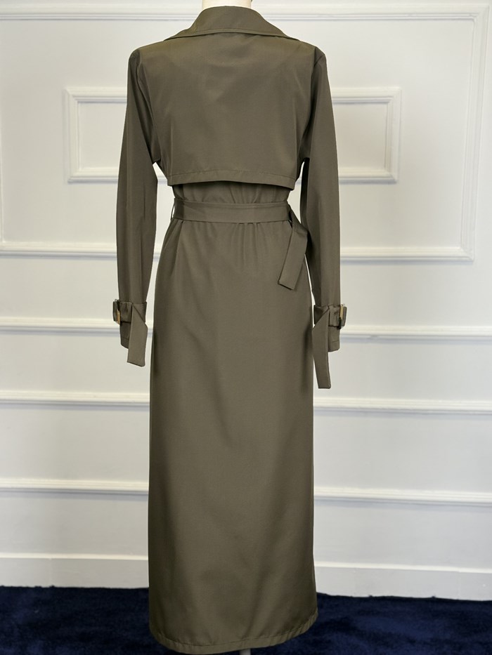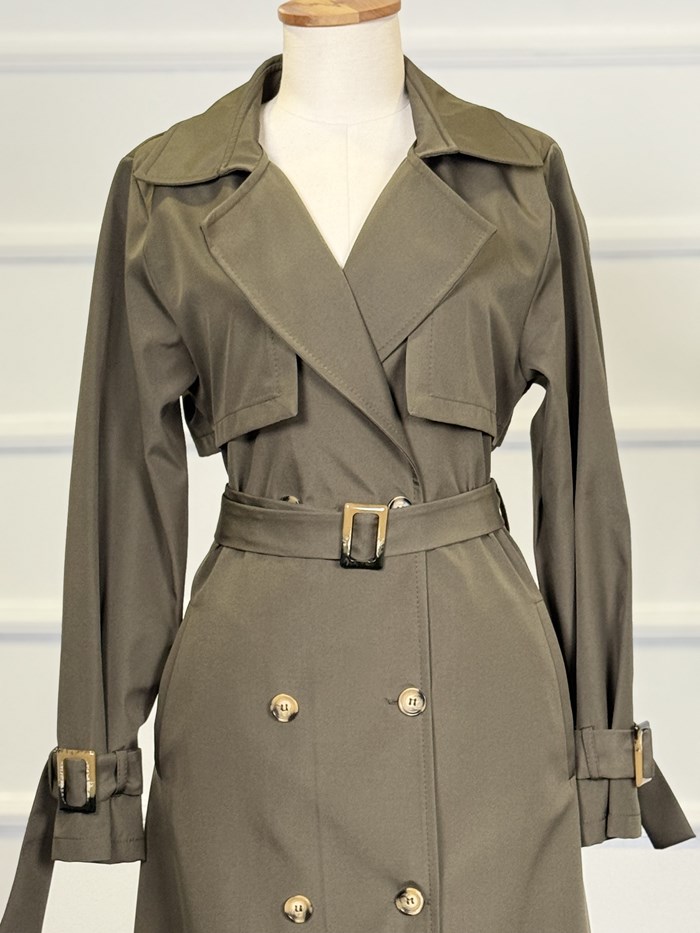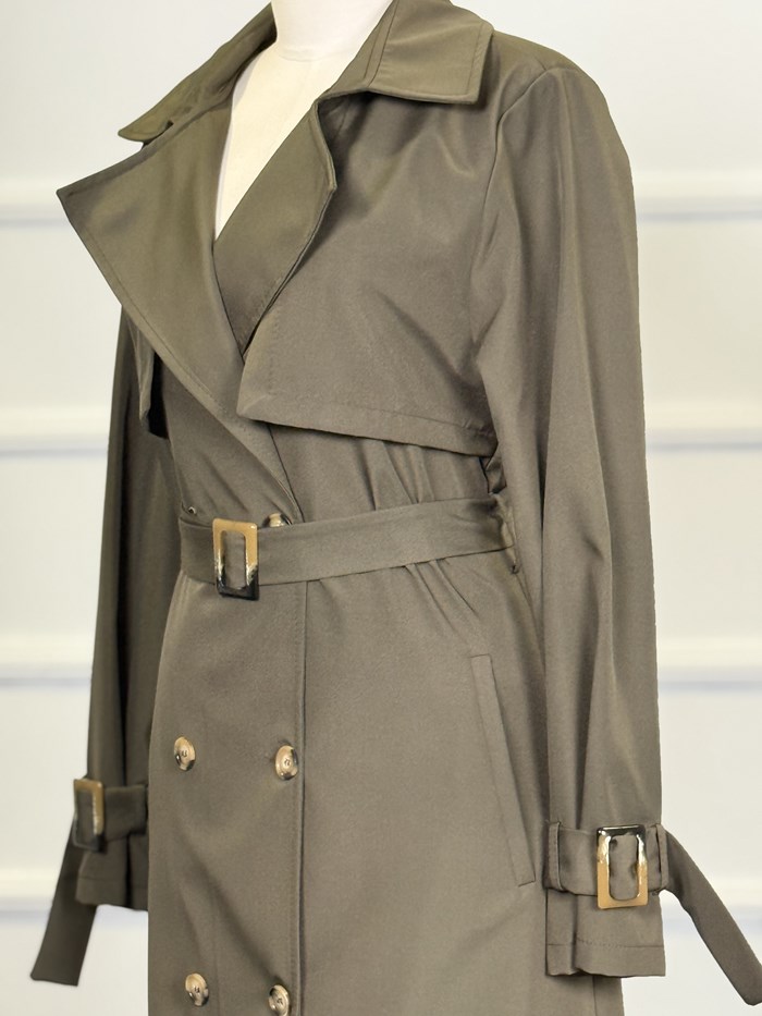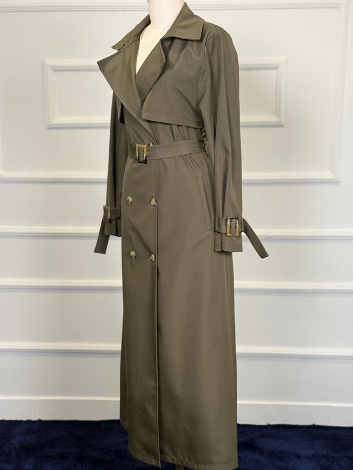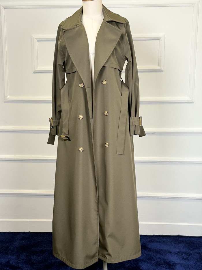 Su Geçirmez Kruvaze Yaka Uzun Trençkot RC3056