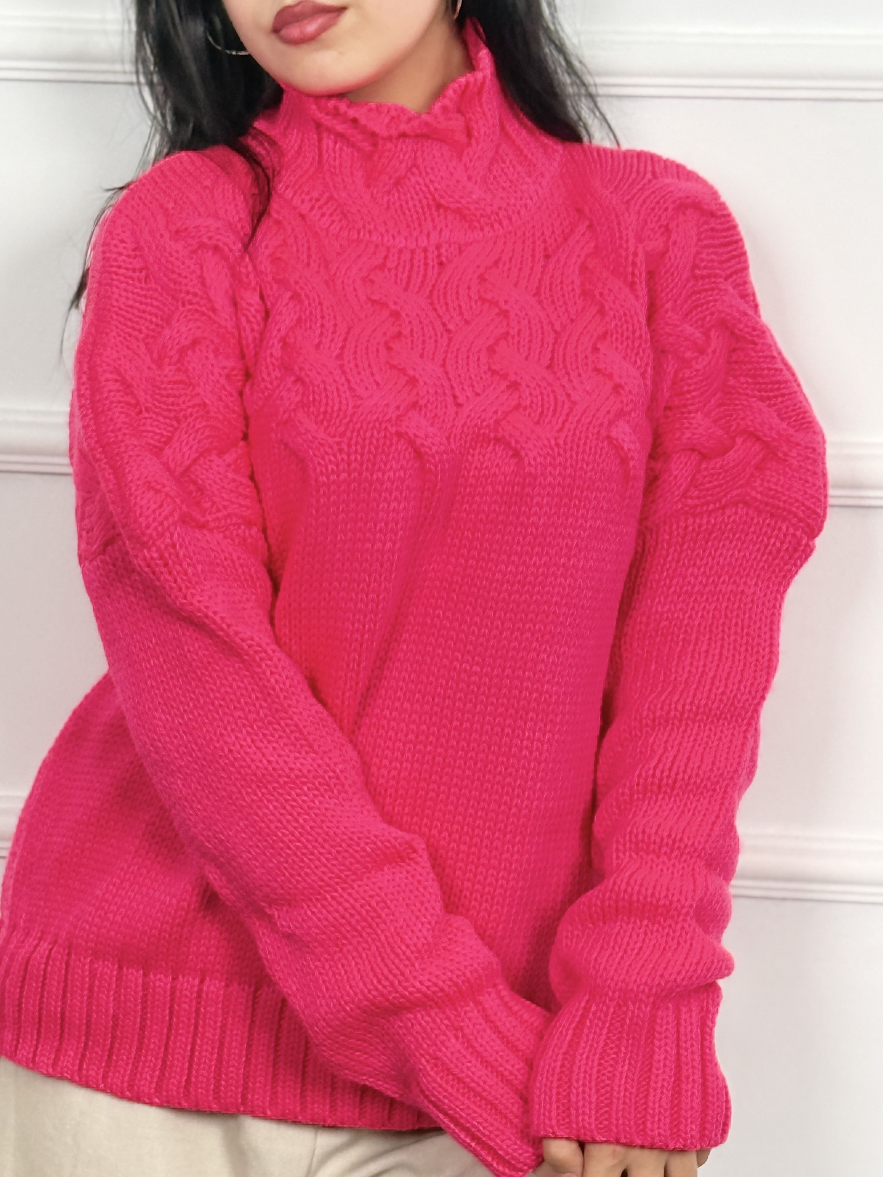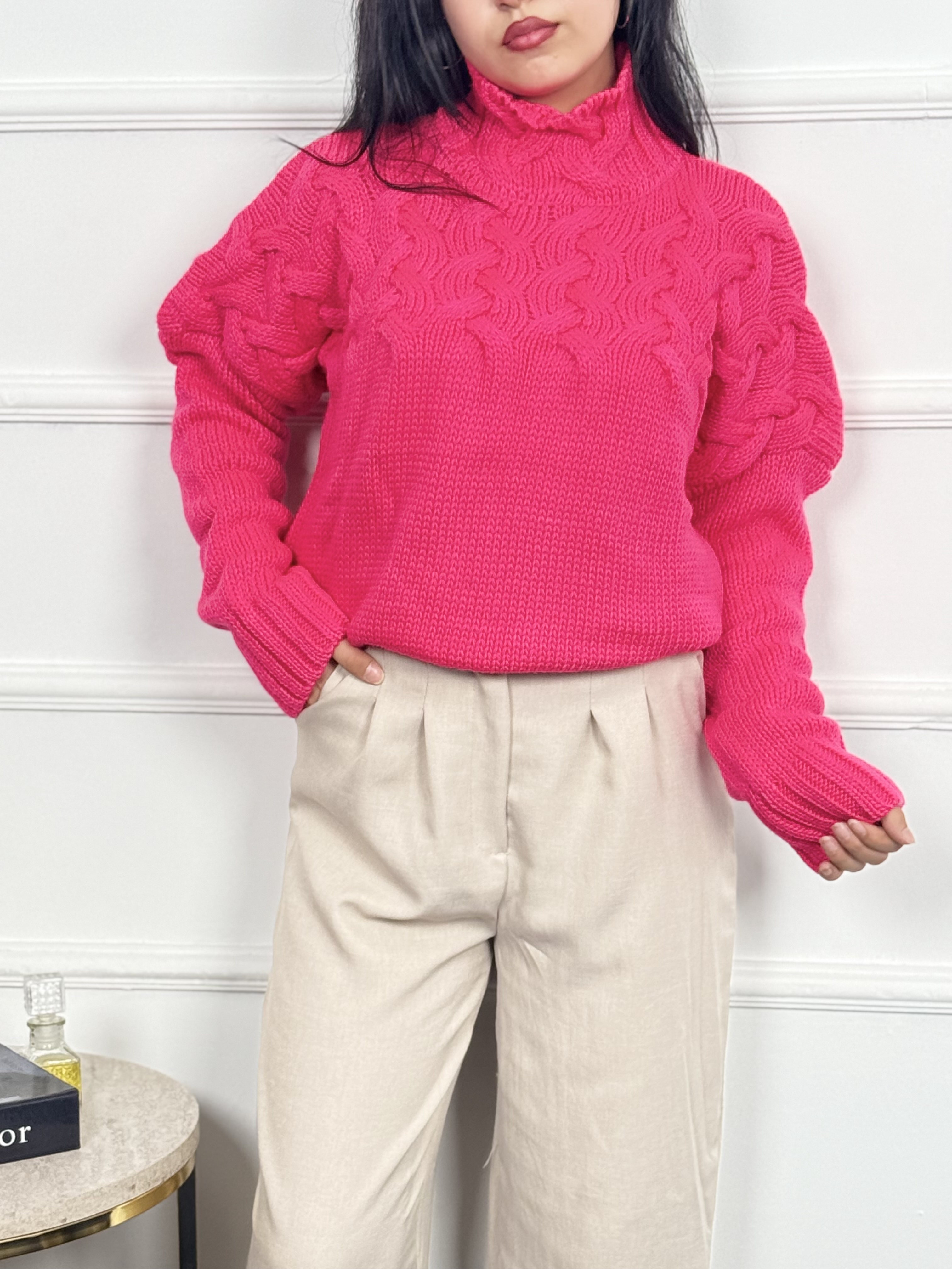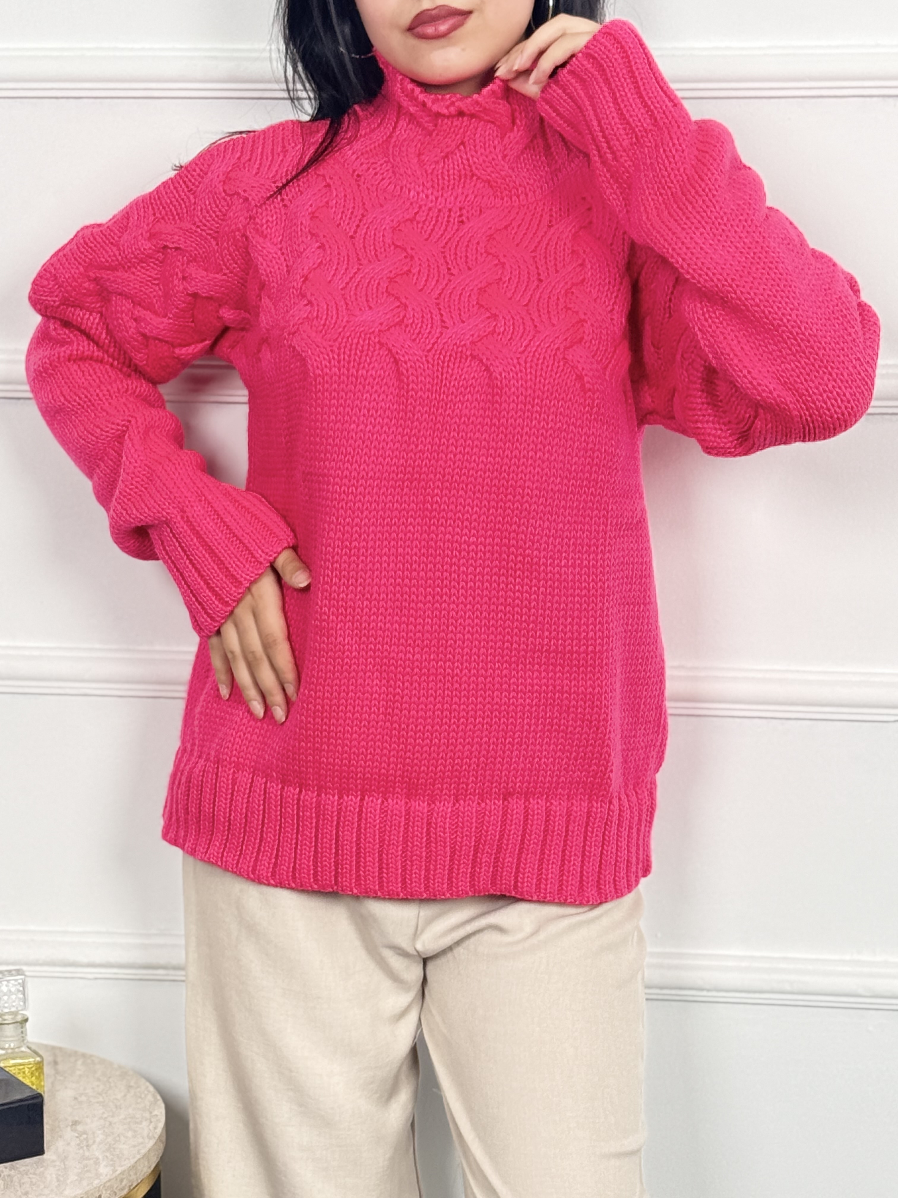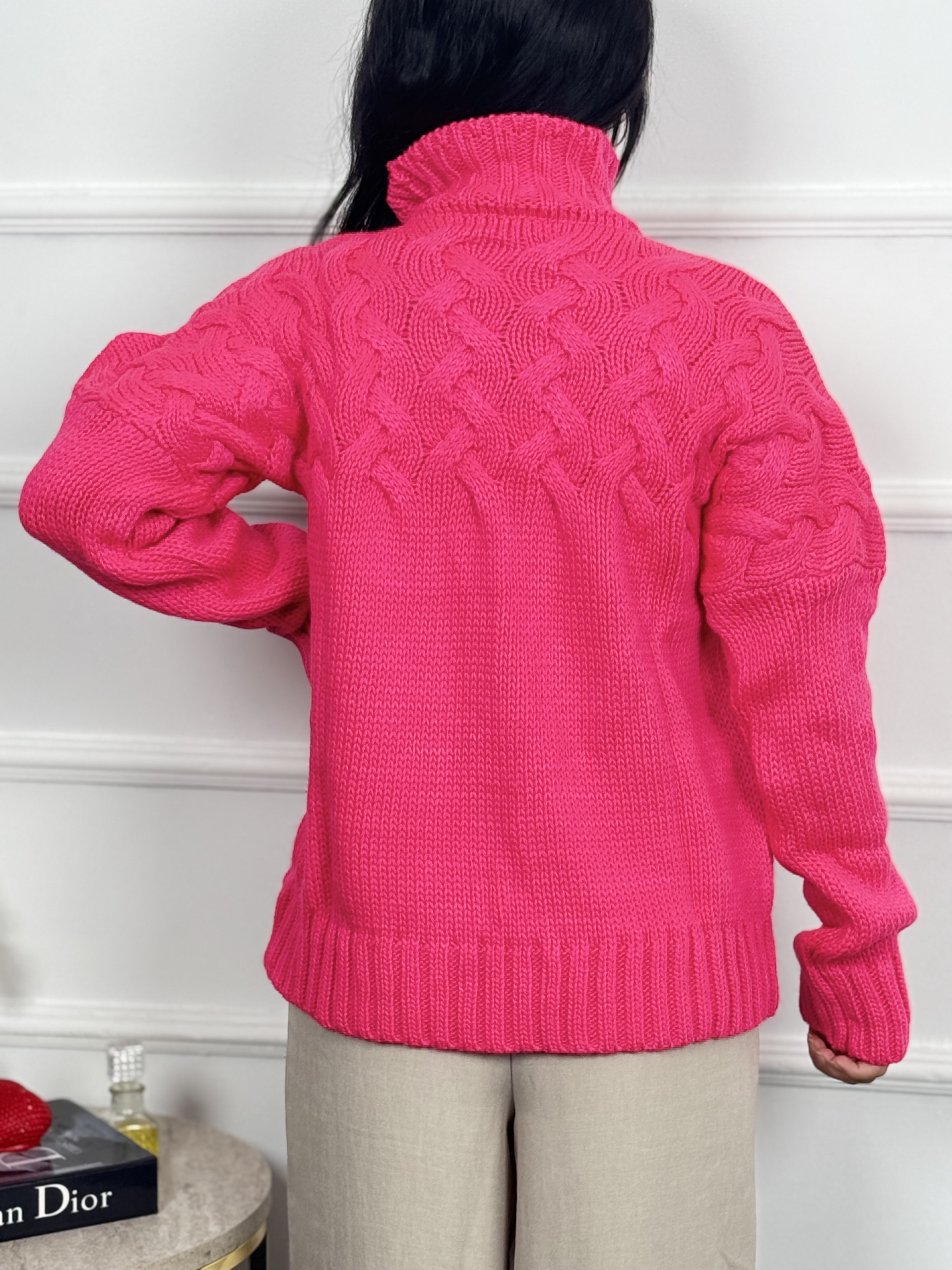 Yarım Balıkçı Yaka Saç Örgü Örme Kazak RC8201